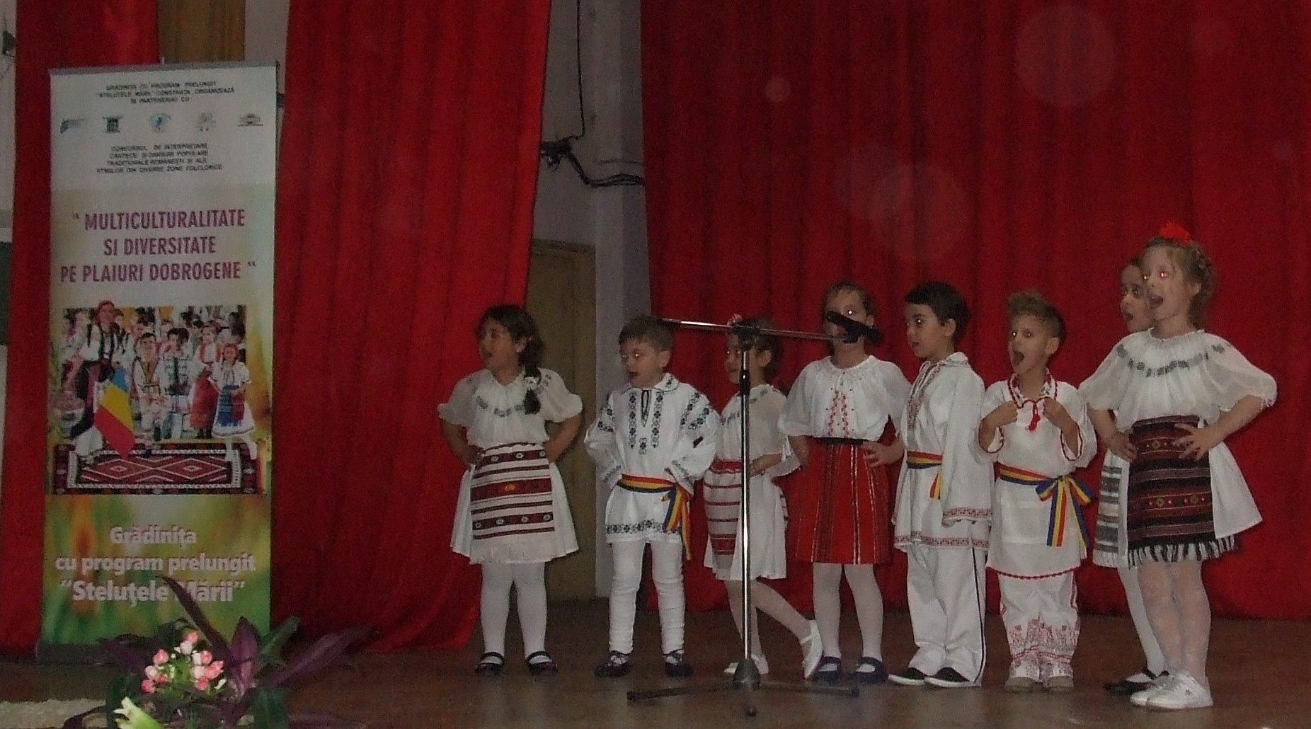 Grădinița Steluțele Mării din Constanța, inițiatoarea Proiectului Regional Multiculturalitate și diversitate pe plaiuri dobrogene a desfășurat, vineri, la Palatul Copiilor Concursul de interpretare cântece și dansuri populare tradiționale românești și ale etniilor din diverse zone folclorice, ediția a III-a, concurs care a avut două secțiuni: interpretare cântec și dans popular.
