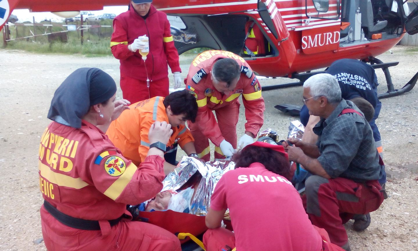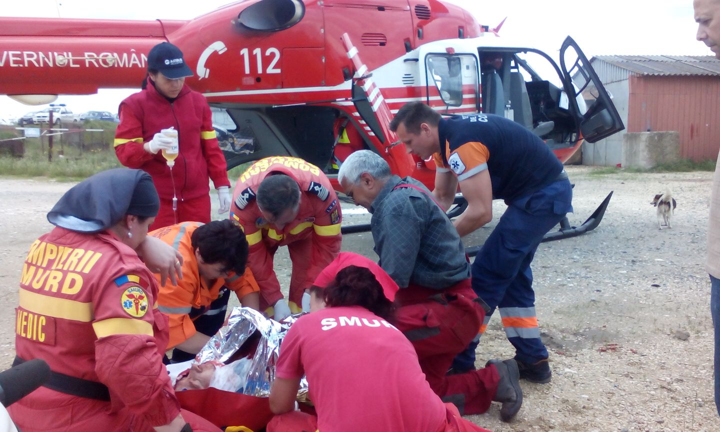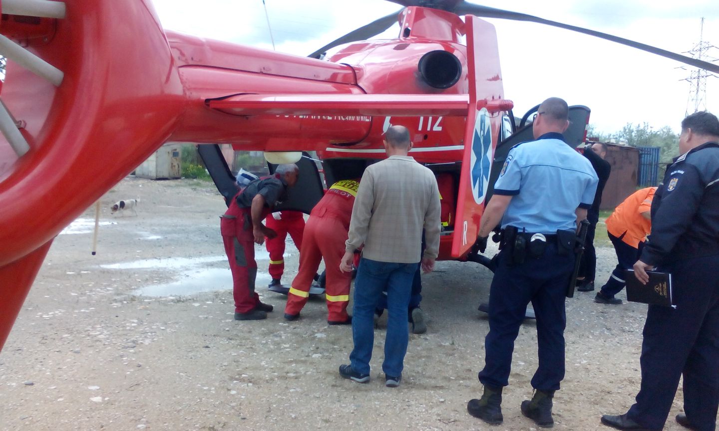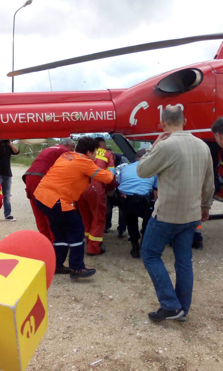 UPDATE: Pacientul a fost transportat la spital cu elicopterul SMURD. Conform medicilor, bărbatul rănit are 40 de ani și prezintă o hemoragie puternică, datorată unui traumatism facial masiv.
