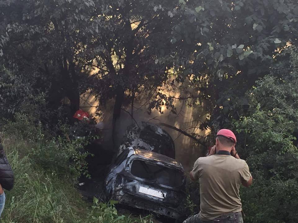 O mașină a luat foc după ce a ieșit de pe traseu și s-a oprit într-un copac.