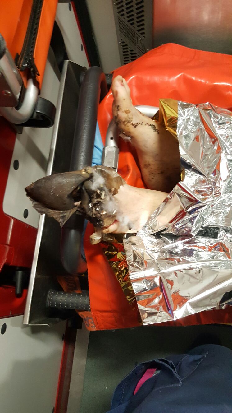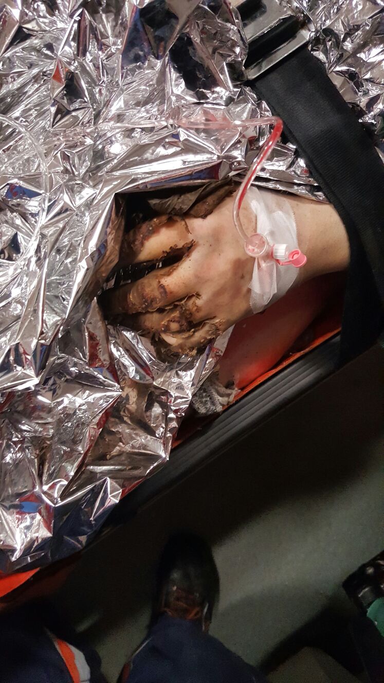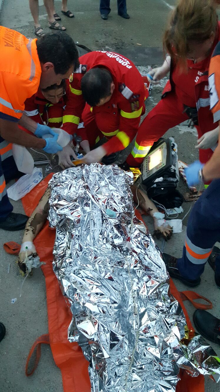 Este vorba despre un bărbat în vârstă de aproximativ 60 de ani, preluat de medici în comă profundă, cu arsuri pe tot corpul. El este intubat, ventilat mecanic şi dus la Reanimare.