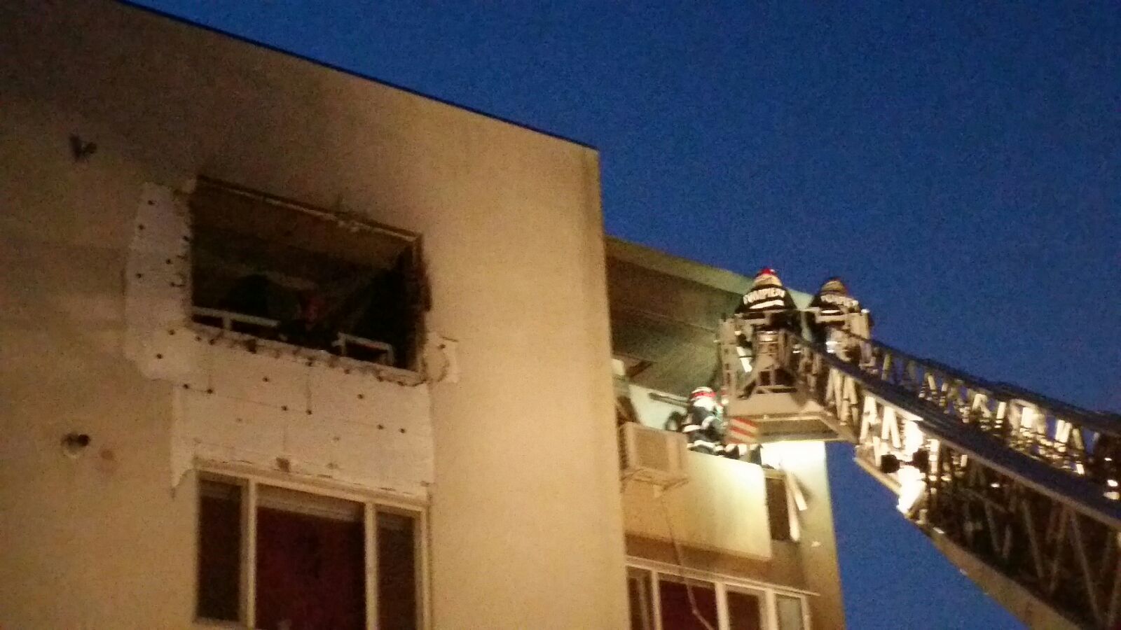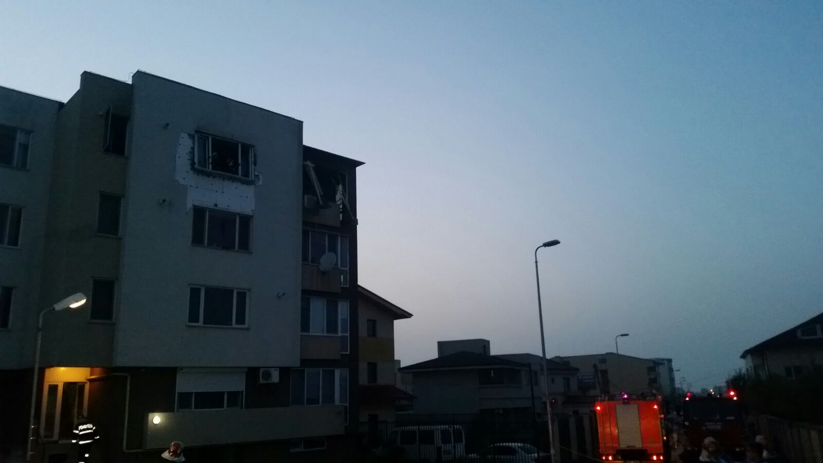 O explozie puternică a zguduit, luni seara, un apartament dintr-un bloc situat într-un cartier rezidenţial, la ieşirea din Constanţa spre Ovidiu. Incendiul a fost lichidat urgent de pompieri. Militarii au folosit autoscara pentru a scoate din interior victima.