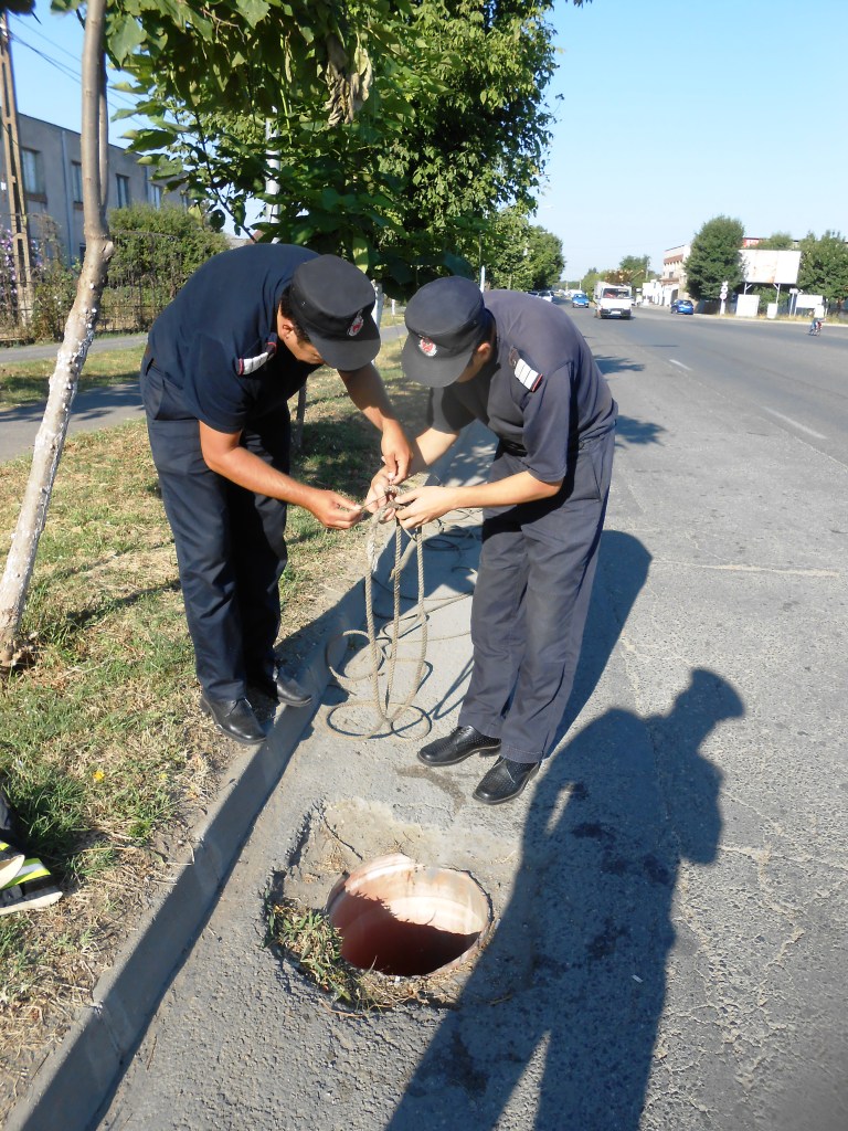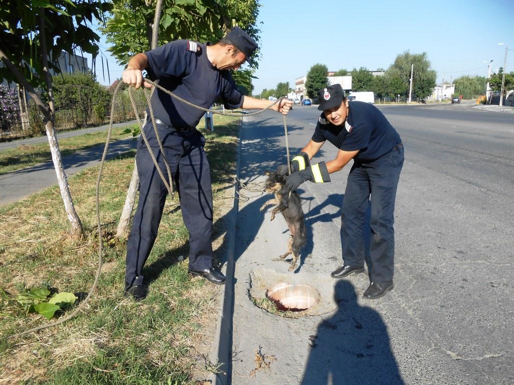 Cei doi pompieri salvatori, colegi de serviciu la Detașamentul Călărași și frați, pe deasupra, au primit misiunea cu puțin timp înainte de ieși din tură. Cu ajutorul unei cordițe de salvare, militarii au reușit în aproximativ 10 minute să extragă cățelul din canalizare și să-l aducă la suprafață nevătămat.