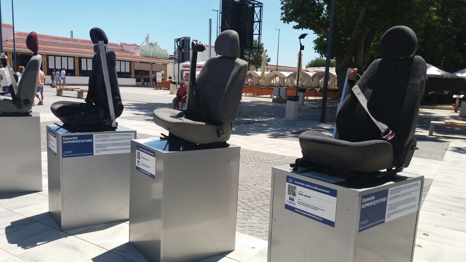 Cine sunt “Supravieţuitorii”? Cei care purtau centura: scaunele şoferilor sau ale pasagerilor care au ales să poarte centura peste spătarul scaunelor. De aceea, au fost extrase din epavele maşinilor implicate în accidente grave, iar acum pot fi văzute în cadrul expoziţiei Supravieţuitorii, care are motto-ul “Trişezi centura, păcăleşti viaţa!”
