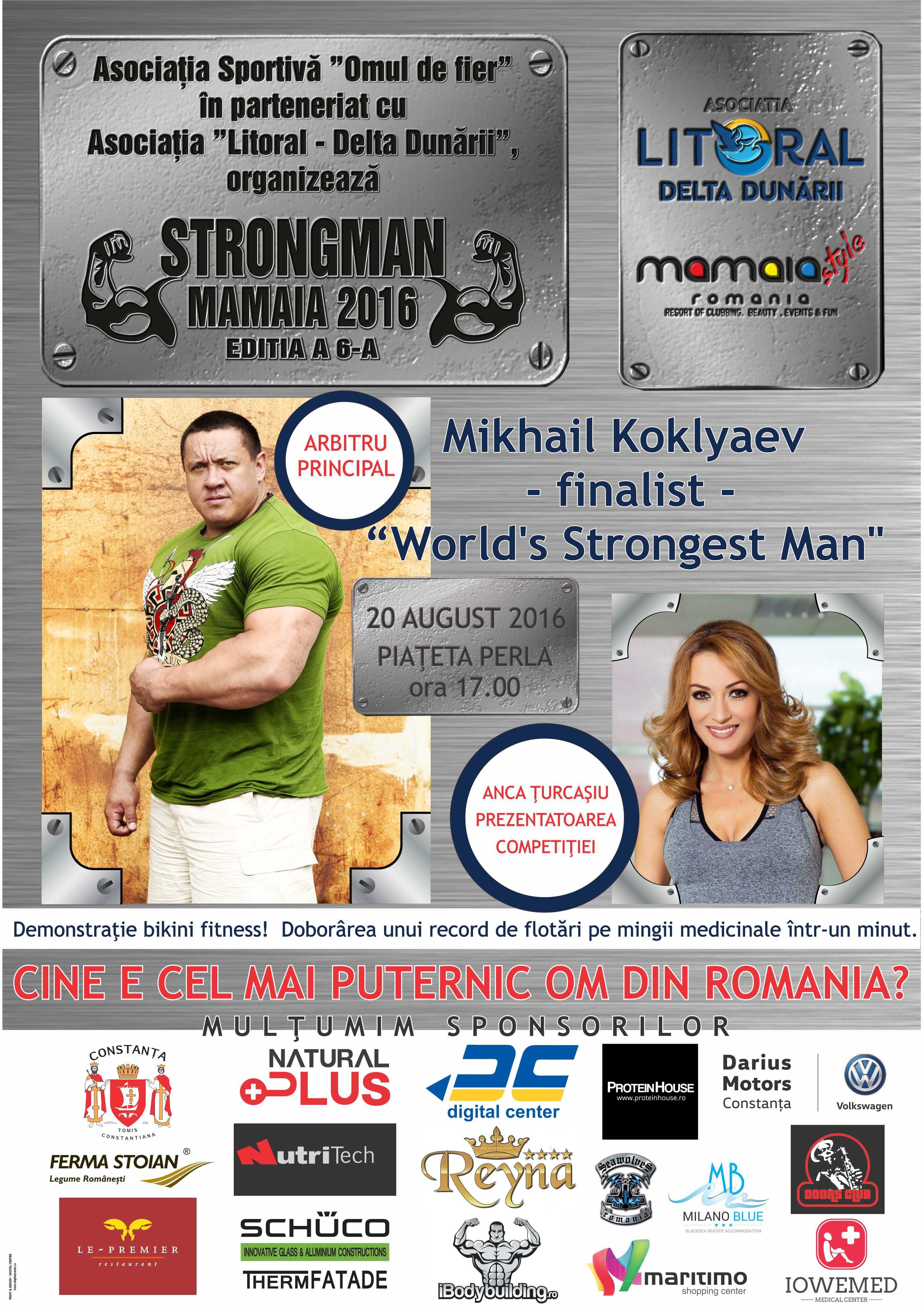 Pe data de 20 august 2016, Asoctiația Sportivă „Omul de fier”, în parteneriat cu Asociația Litoral-Delta Dunării organizează competiția destinată celor mai puternici bărbați din România, STRONGMAN MAMAIA, competiție ce să va află la ediția cu numărul 6! Cinci probe de forță, în care se vor întrece cei mai puternici bărbați din România, alături de invitați speciali din Republica Moldova, Serbia și Anglia.