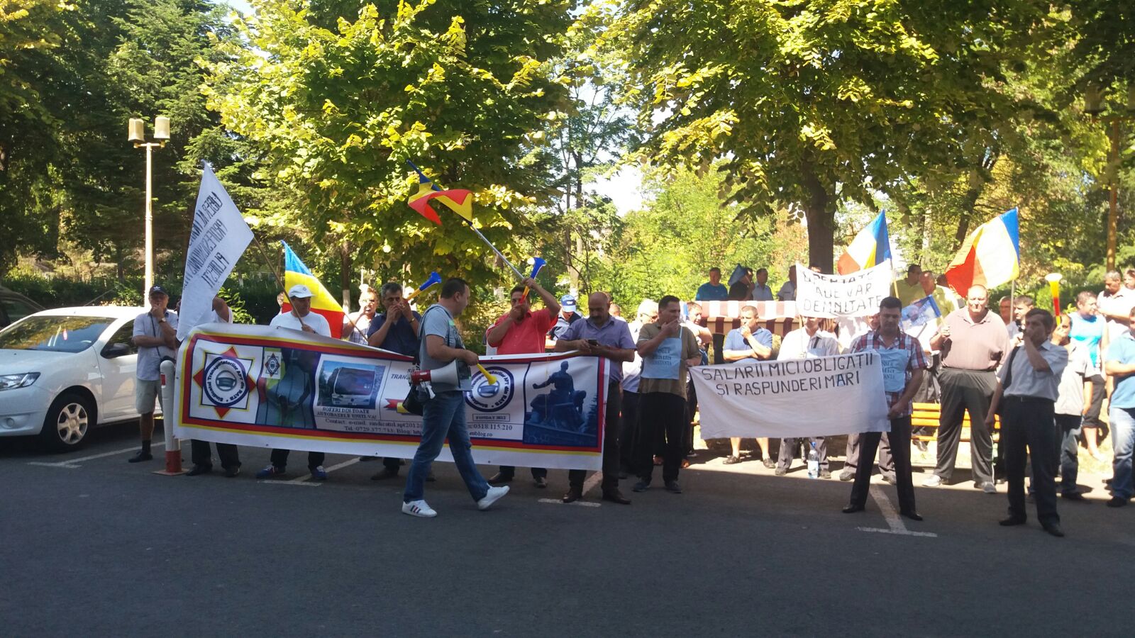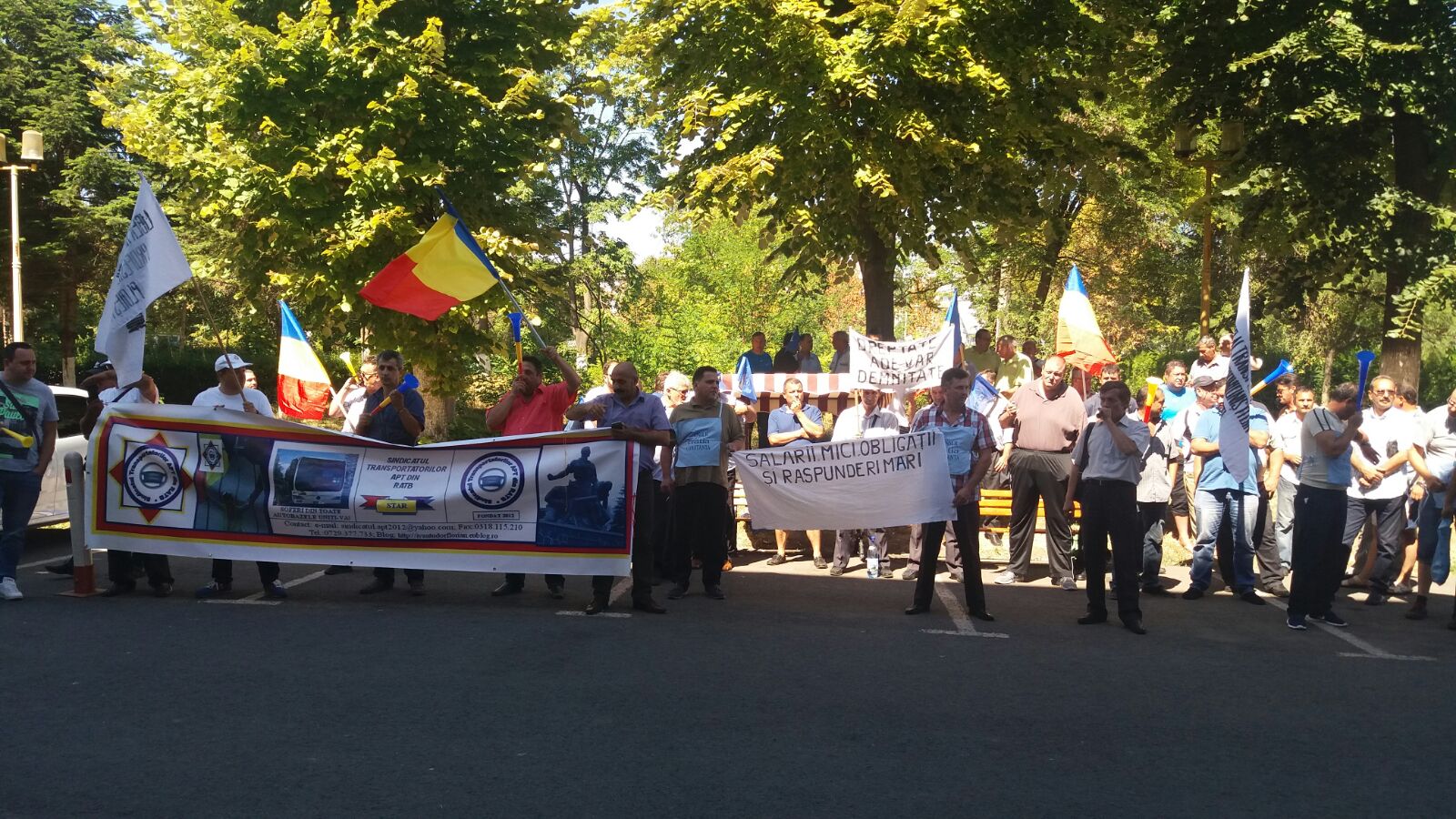 Aproximativ 80 de membri ai Sindicatului Profesional al Transportatorilor şi Activităţilor Conexe din cadrul Regiei Autonome de Transport în Comun Constanța protestează, vineri, la amiază, în faţa Primăriei Constanţa. Sindicaliștii manifestă pașnic, însă fac multă gălăgie, folosind claxoane și vuvuzele.