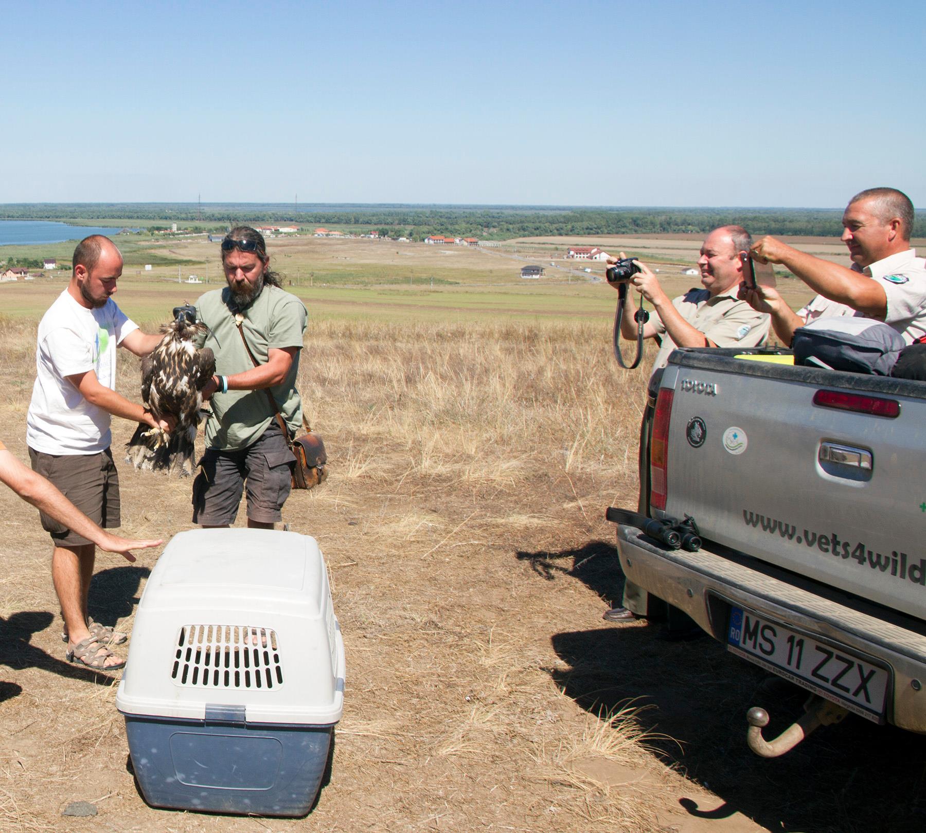 Puiul rănit a fost împachetat și trimis cu o mașină la Târgu Mureș, unde dr. BORKA-VITÁLIS LEVENTE îl operează la aripa dreaptă și îl tratează până la însănătoșire. Crescut câteva luni în volieră, nu exista certitudinea că puiul de codalb va putea zbura.