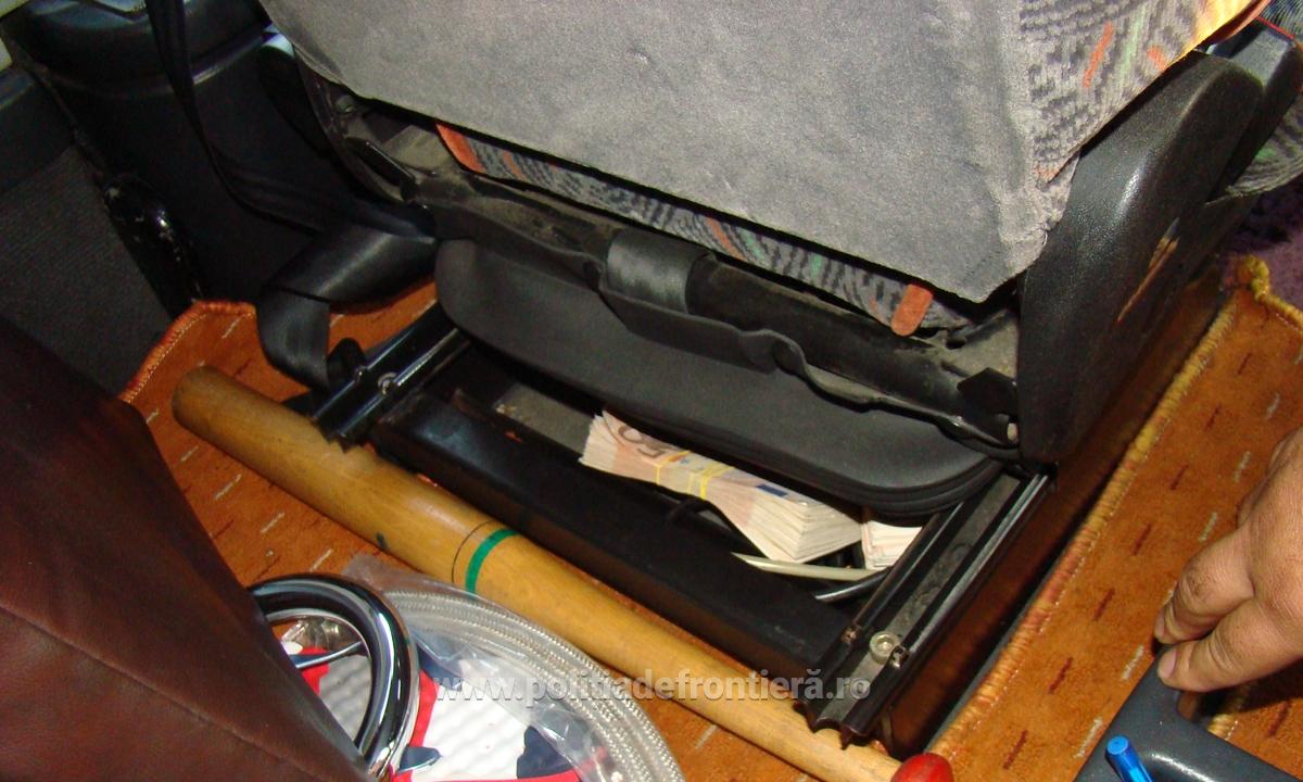 Acţionând în baza unor informaţii, poliţiştii de frontieră au efectuat un control amănunțit asupra persoanelor, bagajelor acestora și autocarului. Astfel, în urma controlului, au fost descoperite, ascunse sub scaunul șoferului și sub spaţiul destinat pentru acumulatorii auto, mai multe pachete învelite în folie şi banda adezivă, care conţineau suma totală de 223.000 euro și 138.000 USD.