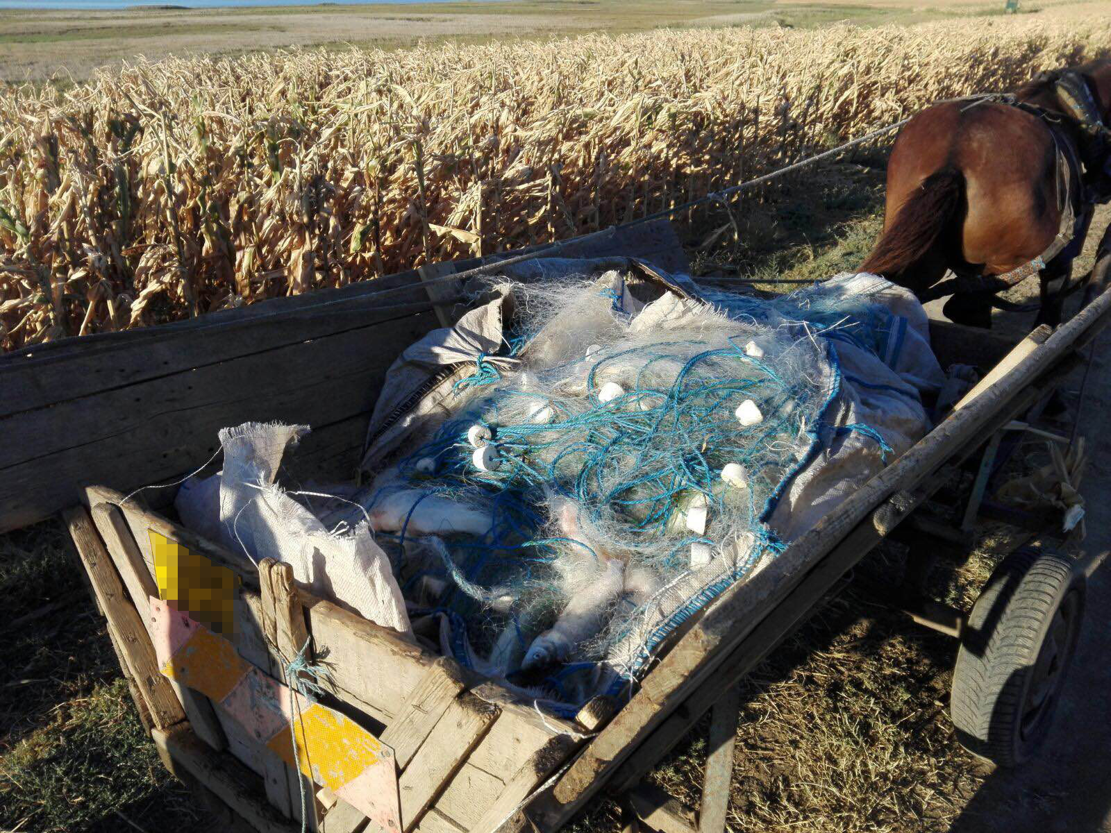 Poliţiştii de frontieră tulceni au identificat, în zona de competenţă, un cetăţean român care transporta, cu un atelaj hipo, peste 1,5 km de plase tip monofilament cu o captură de 160 kg de peşte, fără a deţine documente justificative.