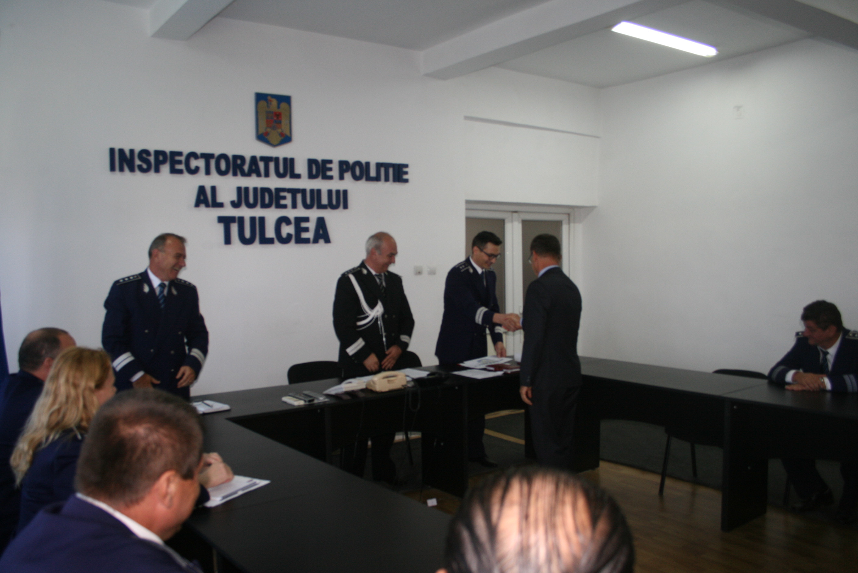 La sediul Inspectoratului de Poliţie Județean Tulcea a avut loc, joi, o şedinţă festivă în cadrul căreia a fost prezentat mesajul inspectorului general al Poliției Române, chestor de poliție Bogdan Despescu, fost șef al IPJ Constanța, transmis cu prilejul acordării gradului profesional următor.