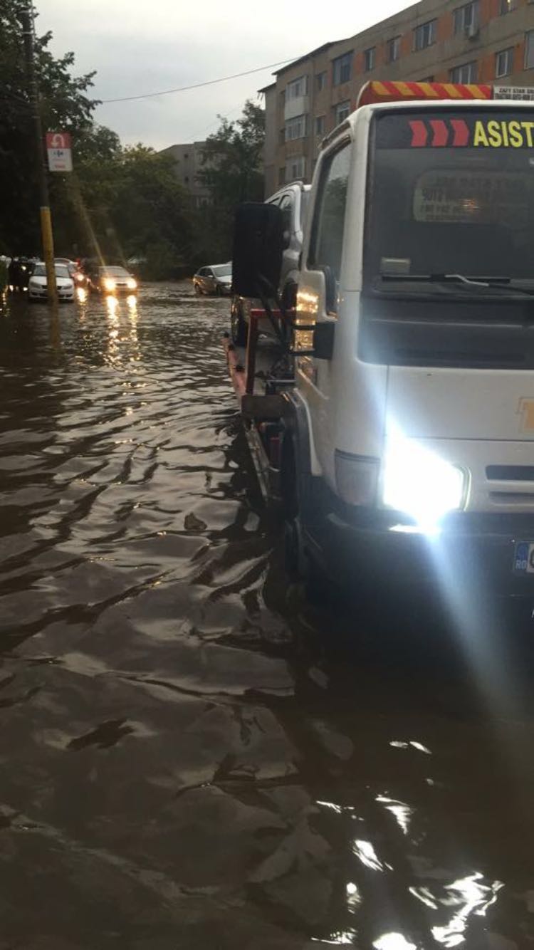 14 autospeciale intervin la această oră pentru limitarea efectelor inundațiilor, pe 45 de străzi și în 16 gospodării.