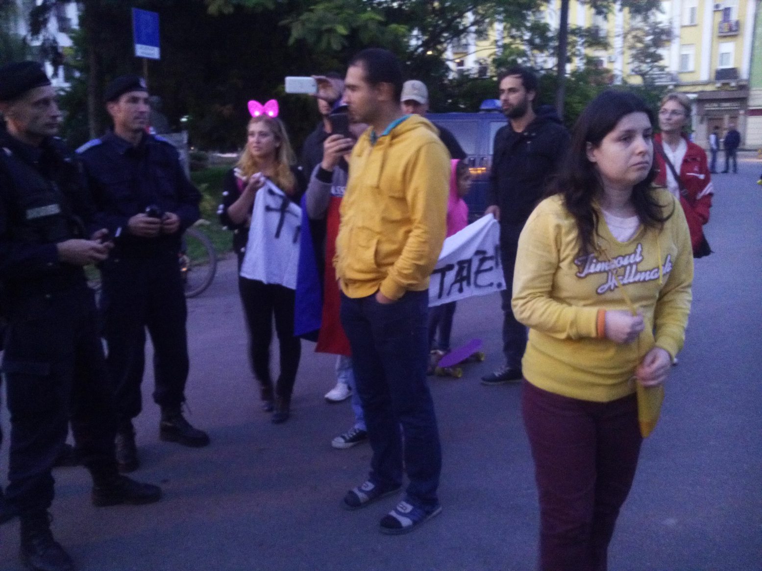 Participanții au vrut să plece într-un marș prin oraș, dar jandarmii nu au permis acest lucru.