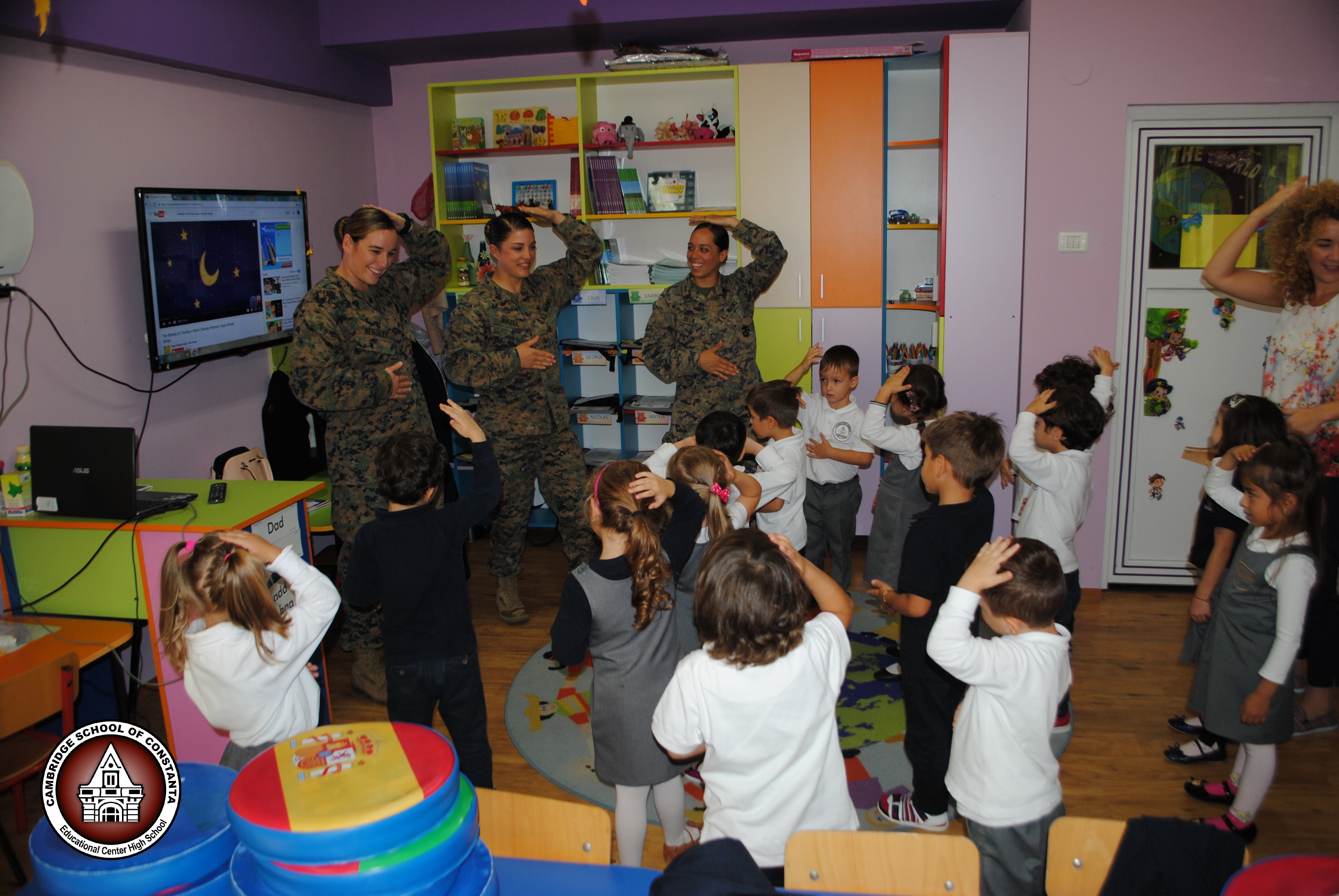 Întâmpinați de trupele feminine ale Pușcașilor marini, elevii de la Cambridge au avut, miercuri, o zi specială. Cei mici de la grădiniță au conversat, s-au jucat, au dansat și au cântat alături de invitate, iar elevii mai mari și-au îmbogățit vocabularul citind împreună cărți în limba engleză și discutând despre experiența lor.