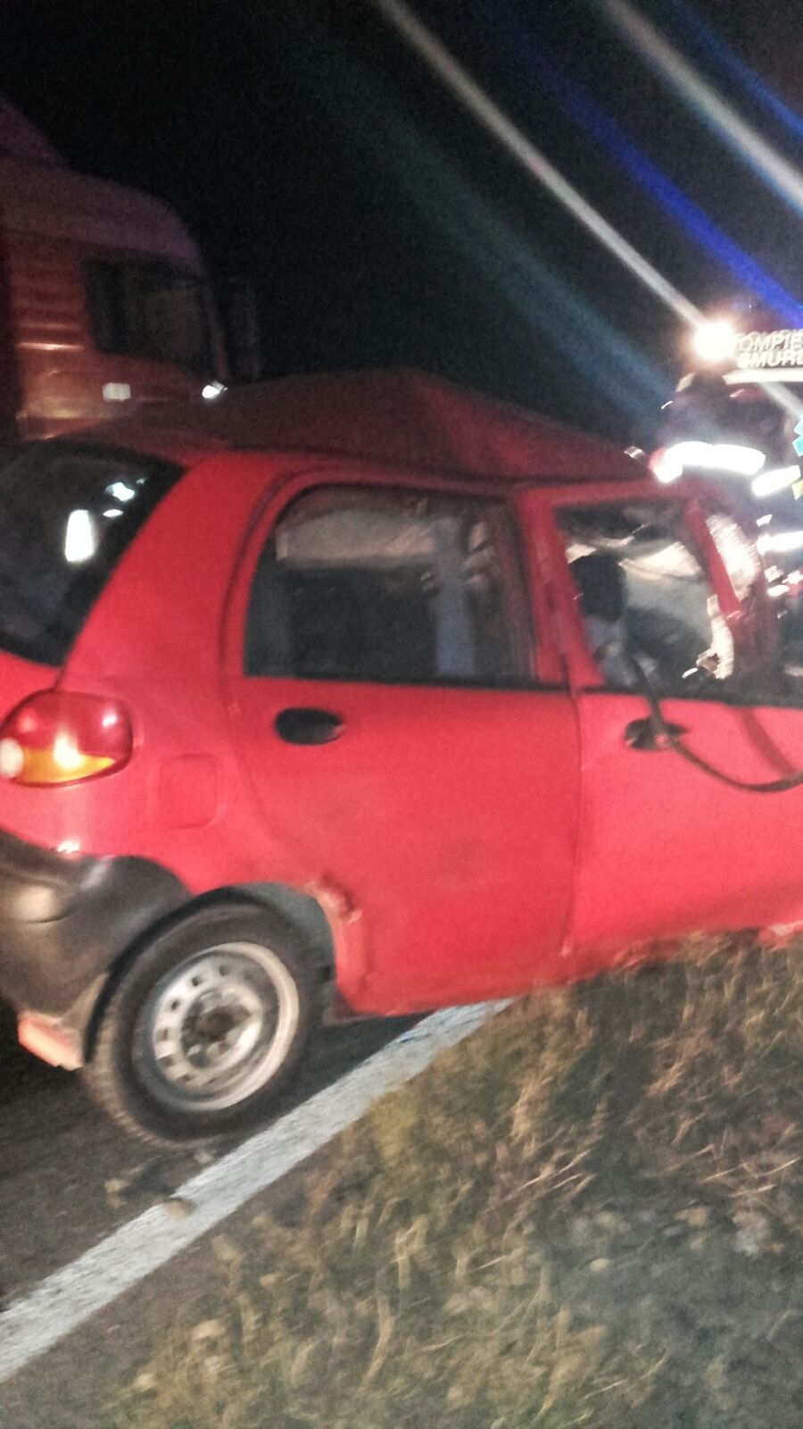 Conform martorilor, un autoturism marca Matiz a fost lovit de un autocamion. Şoferul maşinii ar fi decedat.
