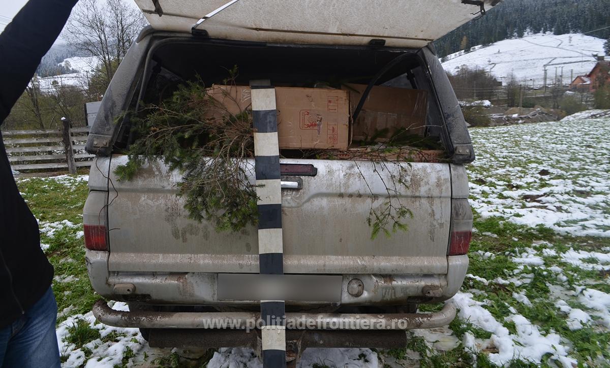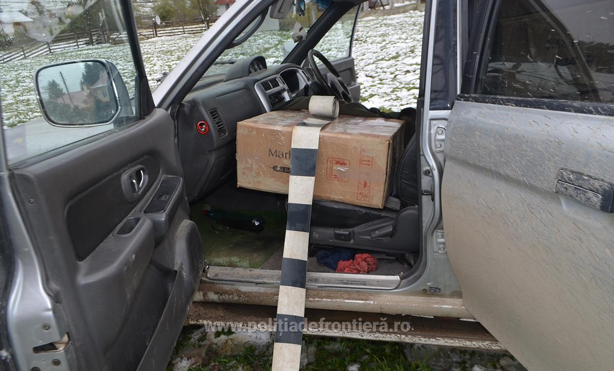 În ziua de 14 octombrie, un echipaj al poliției de frontieră din cadrul SPF Izvoarele Sucevei, aflat în exercitarea atribuțiilor de serviciu, a efectuat semnalele regulamentare pentru a opri la control un autoturism de teren înmatriculat în România.