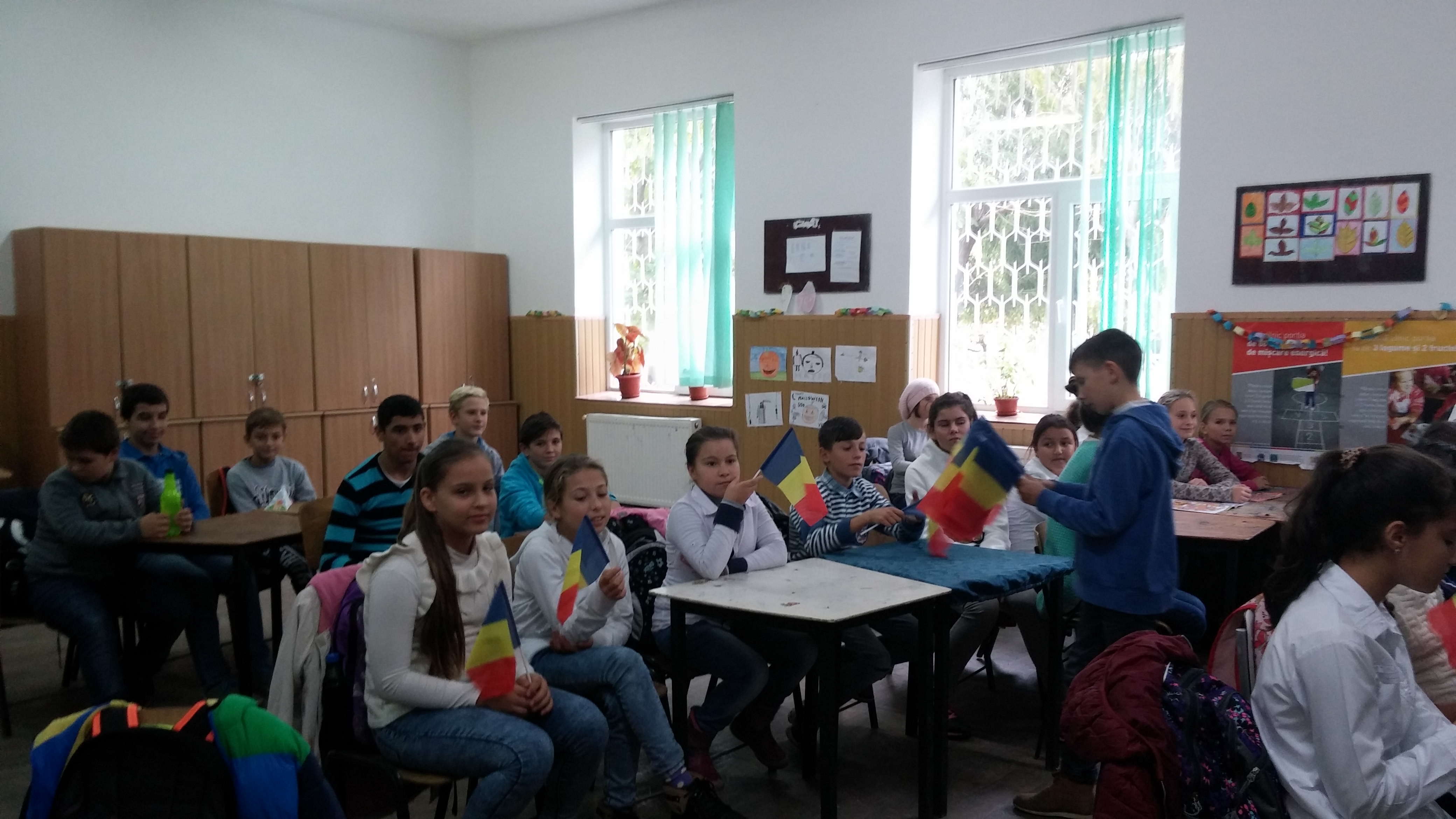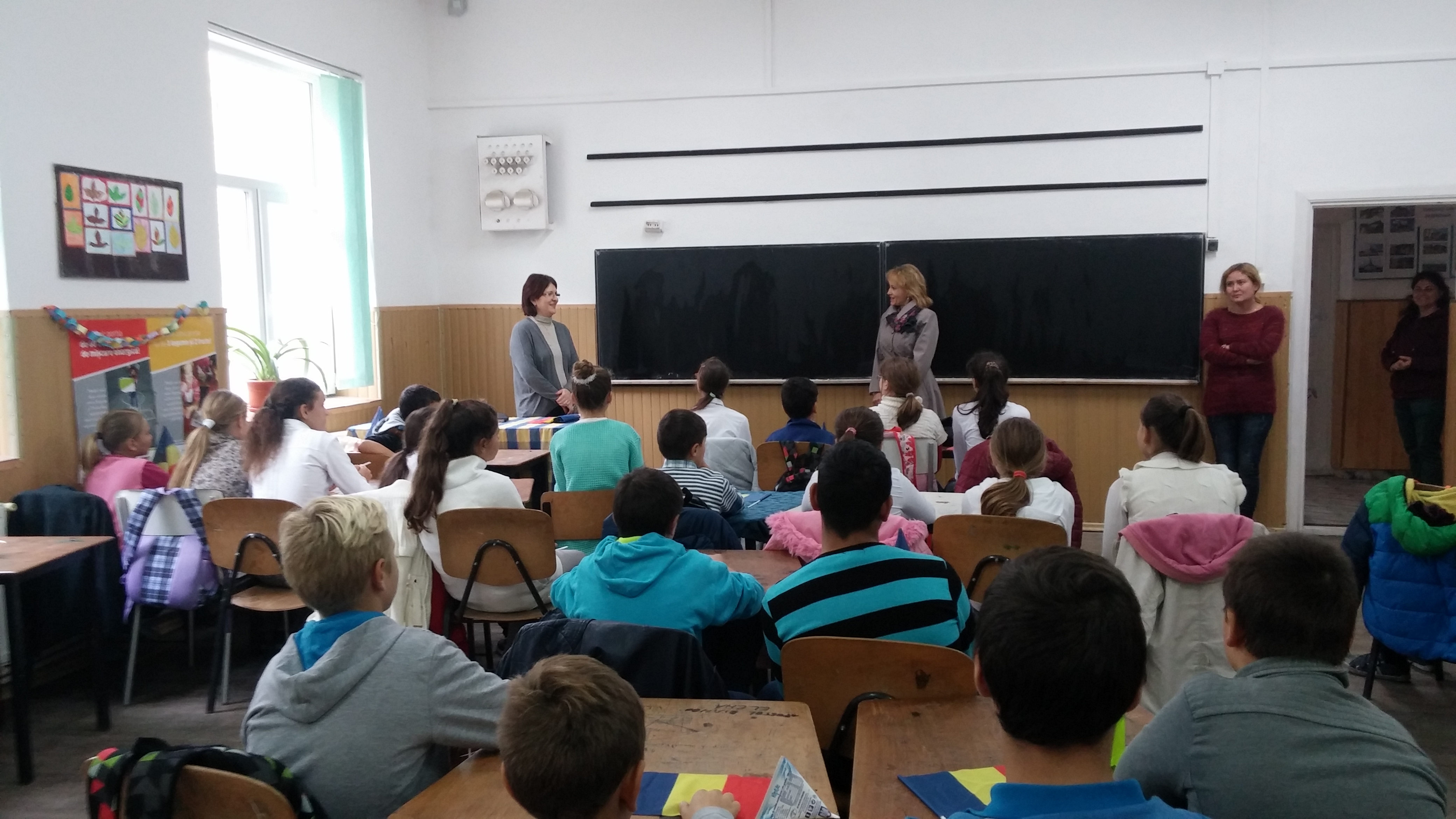 La şcoala generală din sat am fost întâmpinaţi de copiii claselor a V-a şi a VI-a şi de doamna director Carmen Iorgu. A fost prezentat copiilor istoricul Radiodifuziunii Române, s-a vorbit despre cărţi şi despre cât este de important să citeşti, despre istoria locurilor.