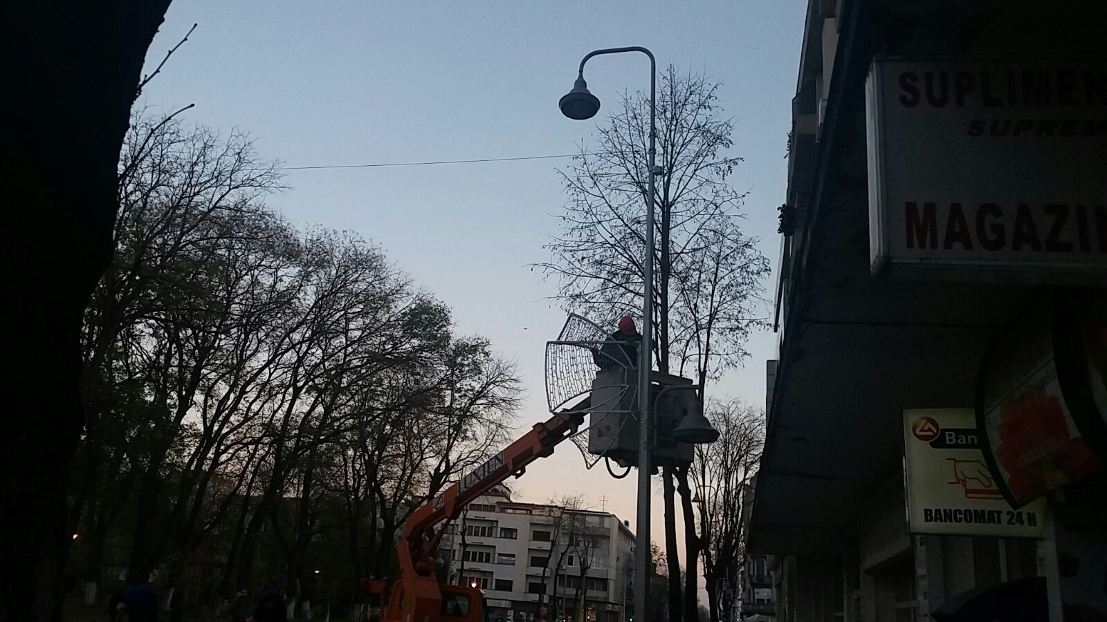 Beculețe, brăduți și fulgi de nea ornamentali brăzdează deja, la înălțime, bulevardele Ferdinand și Tomis. Lucrările vor continua zilele următoare.