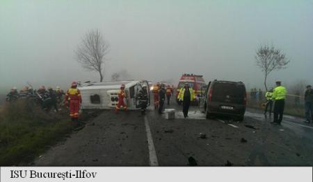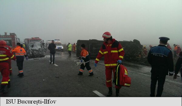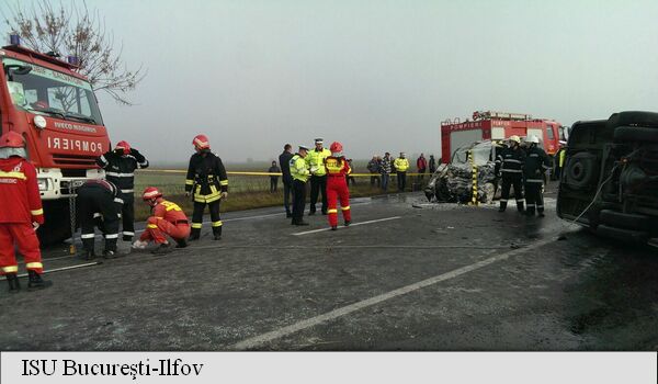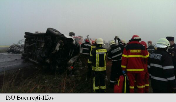 Persoanele rănite în urma accidentului petrecut sâmbătă dimineață pe DN2 sunt transportate la spital, până în prezent fiind duse 12 victime, au anunțat oficiali ai ISU București.