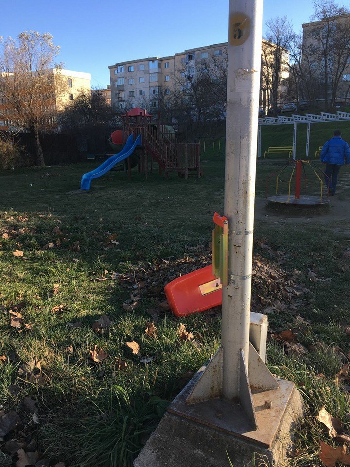 Parcul a fost reabilitat și curățat destul de recent. Aici se află și un loc de joacă și un teren de sport, iar zona arăta chiar bine până acum, când indivizi provenind din pleava societății i-au dat un aspect dezolant …