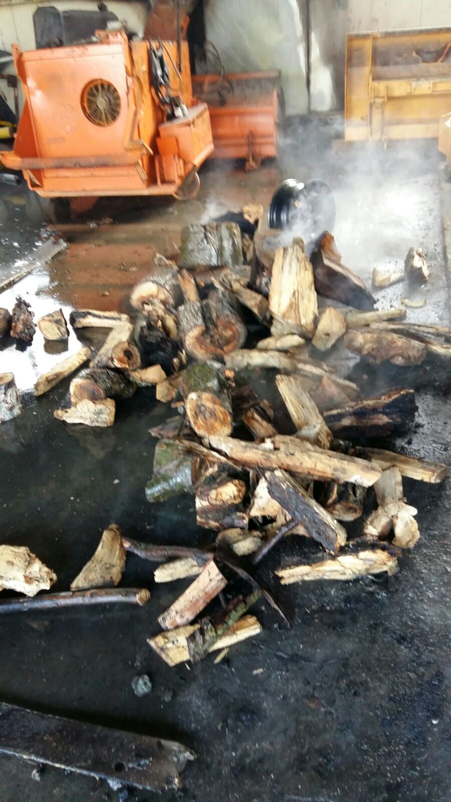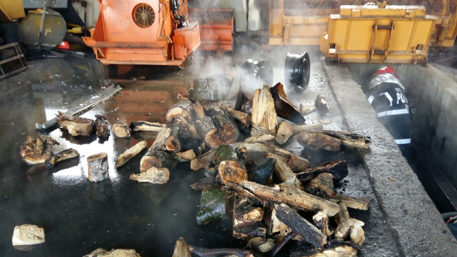 Arde o suprafață de aproximativ 500 mp. În garaj sunt atât utilaje, lemne, dar și cantități mai mari de motorină depozitate.