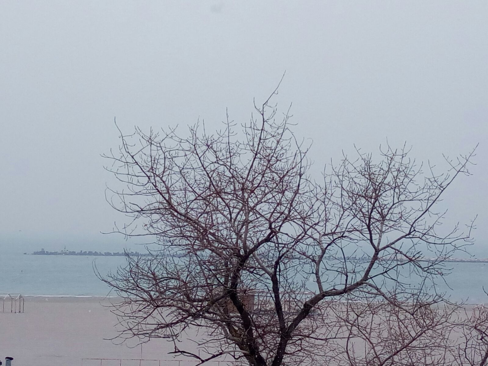 Imagini cu fulgii de zăpadă au fost surprinse și pe litoral, astfel nisipul din stațiunea Mamaia abia că mai putea fi zărit din cauza ninsorii.