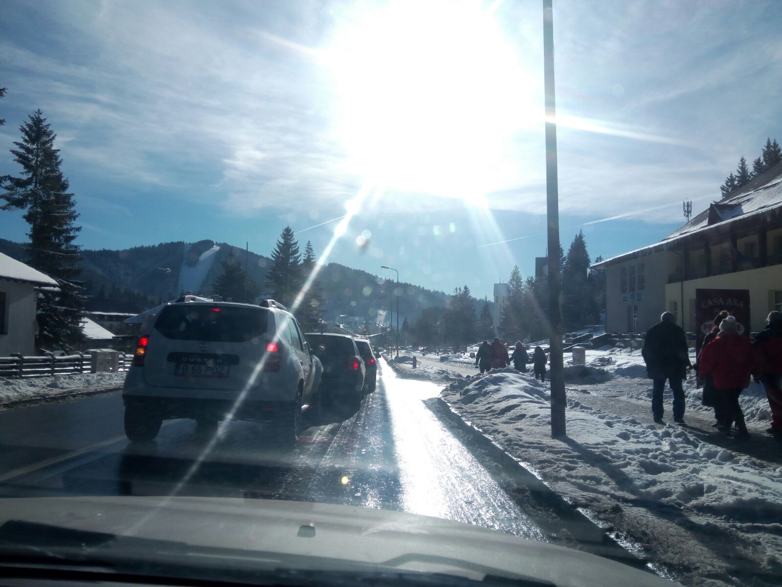 Centrul INFOTRAFIC din Inspectoratul General al Poliţiei Române informează că, în judeţul Braşov, traficului rutier pe DN1E, atât dinspre Braşov către Poiana Braşov, cât şi dinspre Râşnov, este extrem de aglomerat iar parcările din staţiune sunt pline.