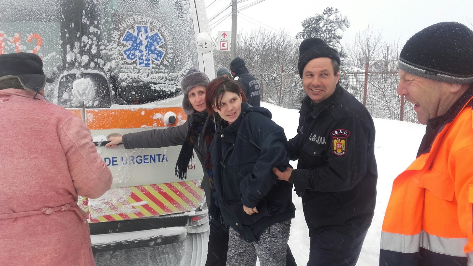 Femeia a născut acasă în prezenta paramedicilor, iar apoi a fost transferată la ambulanță cu ajutorul șenilatei de la RAJDP.