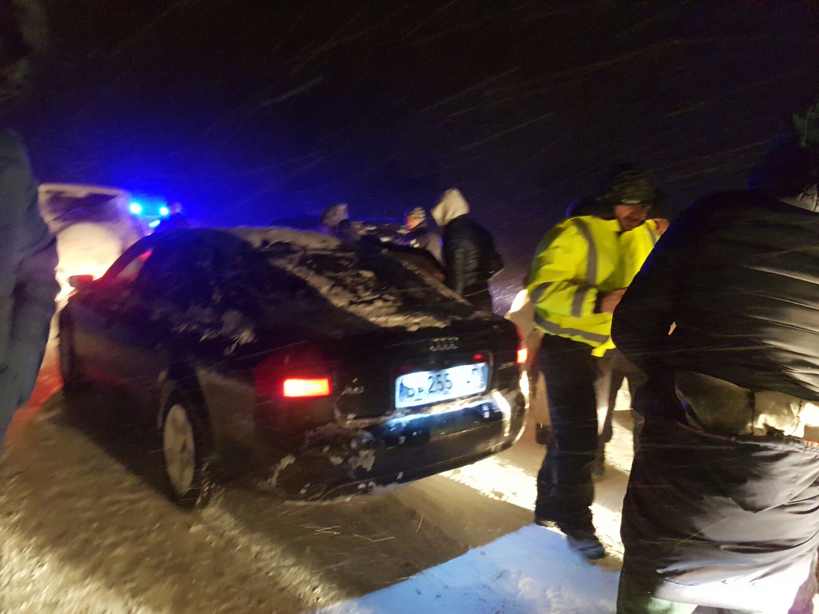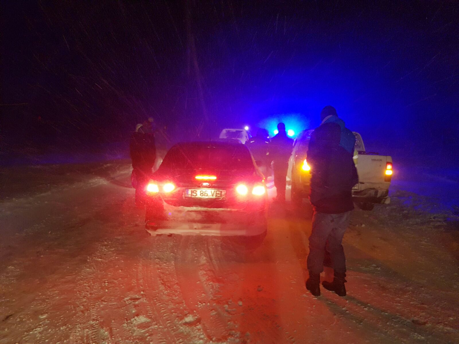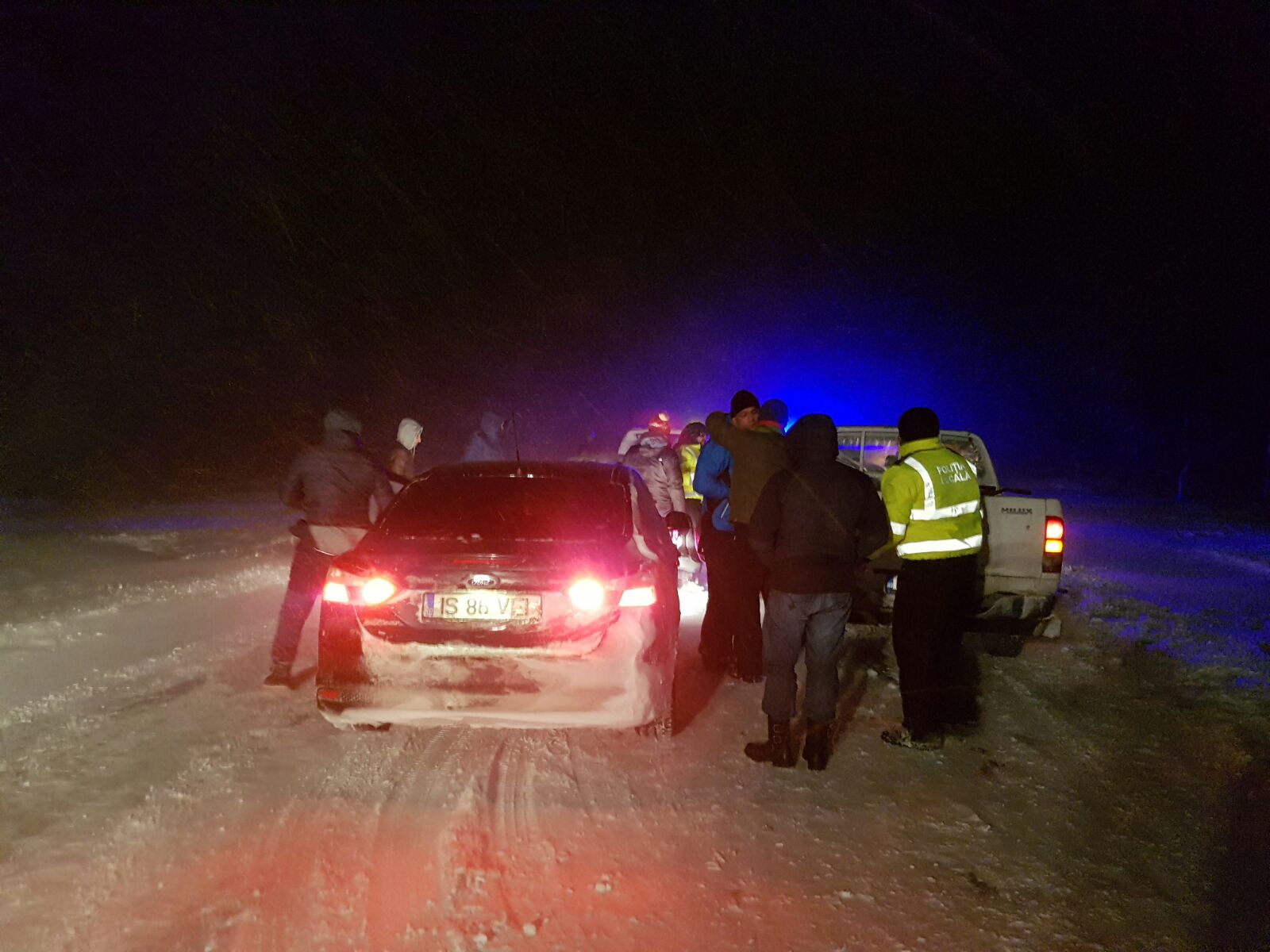 Un microbuz în care se aflau 13 persoane a rămas noaptea trecută blocat în zăpadă, între Nazarcea și Poarta Albă.