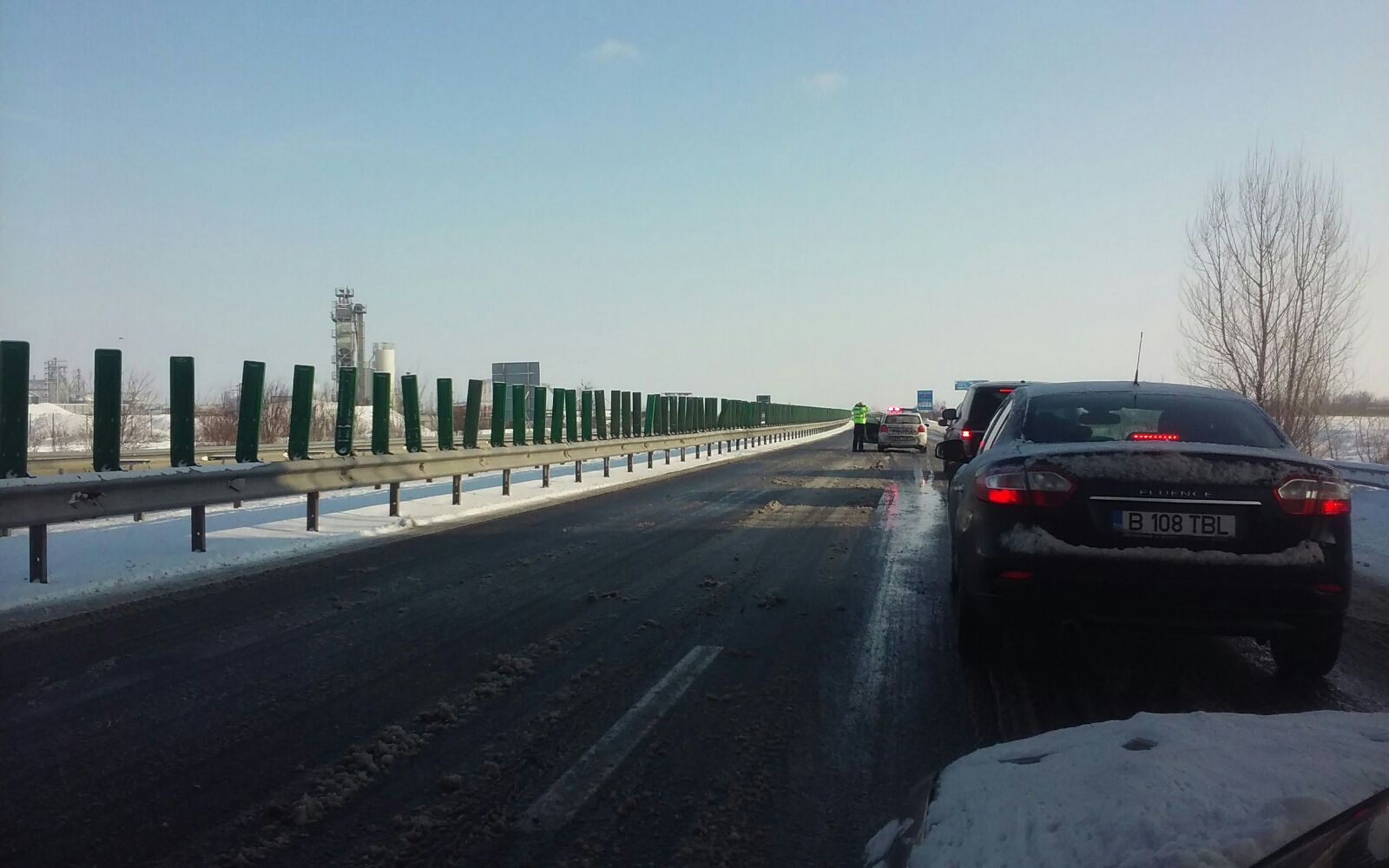 Reamintim că, traficul rutier a fost reluat, pe tronsonul Lehliu – Gară – Constanţa al autostrăzii Soarelui. Se circulă în condiţii de iarnă iar pentru evitarea producerii unor accidente, traficul rutier se desfăşură sub supravegherea unui echipaj de poliţie rutieră.