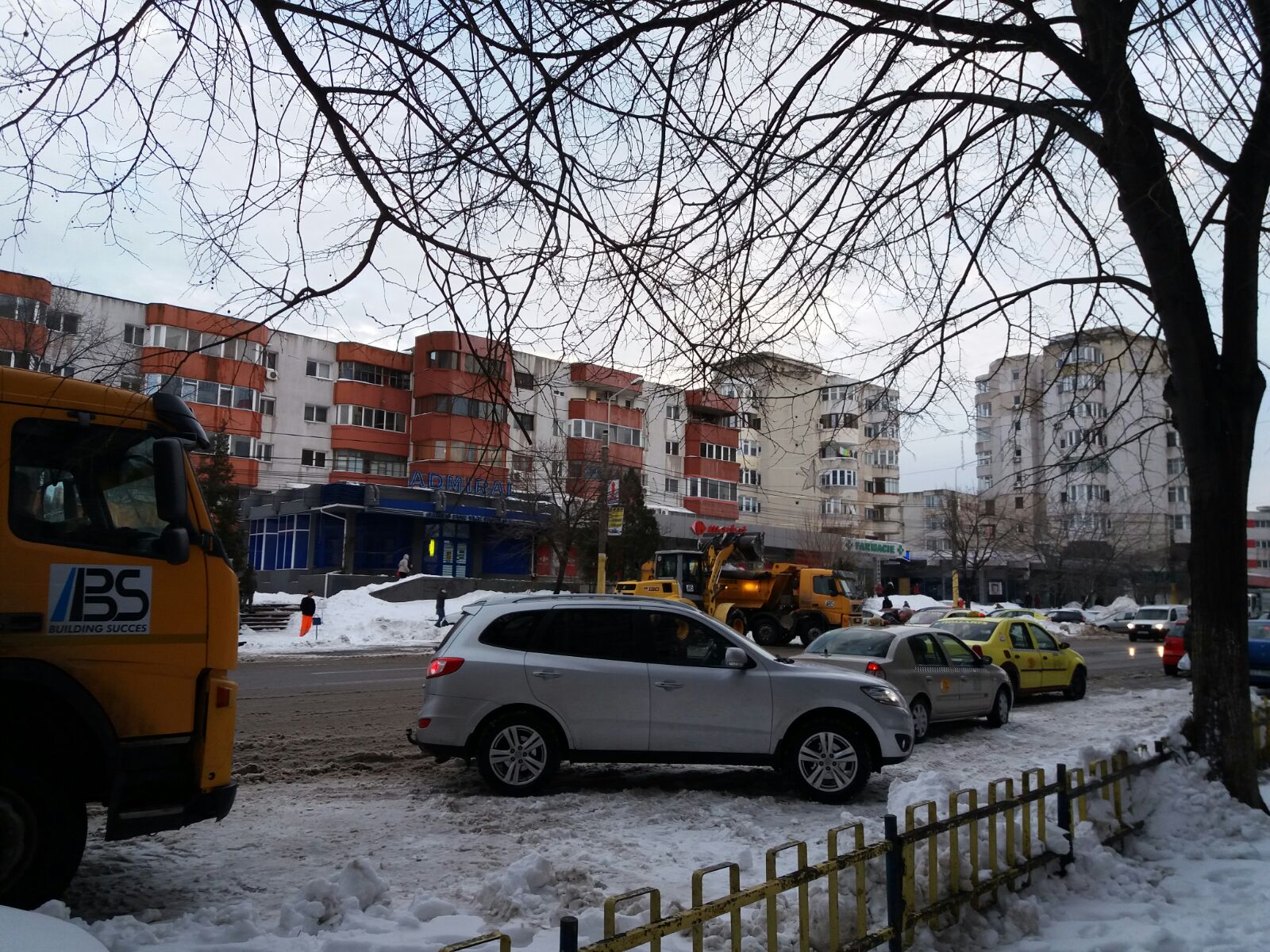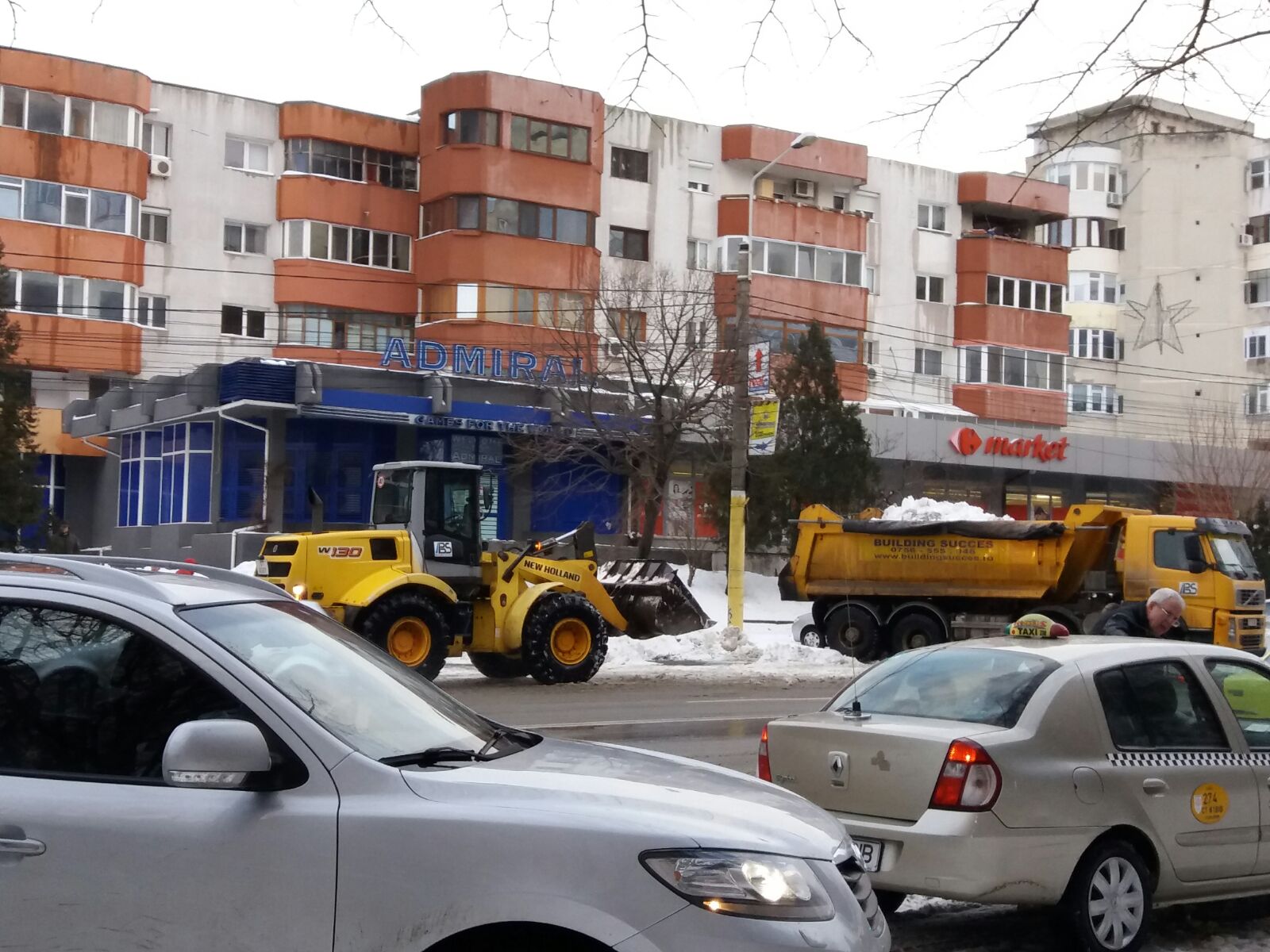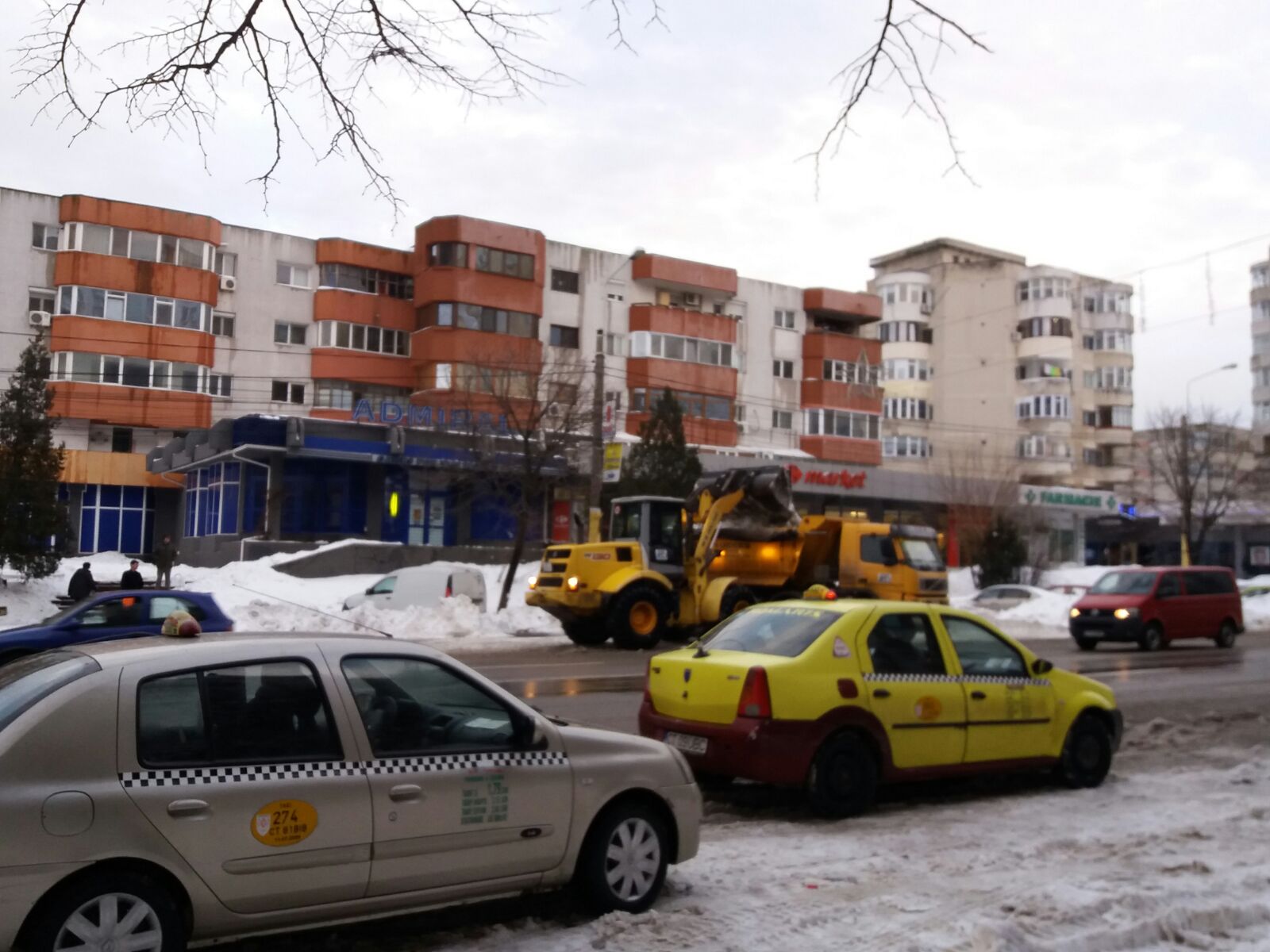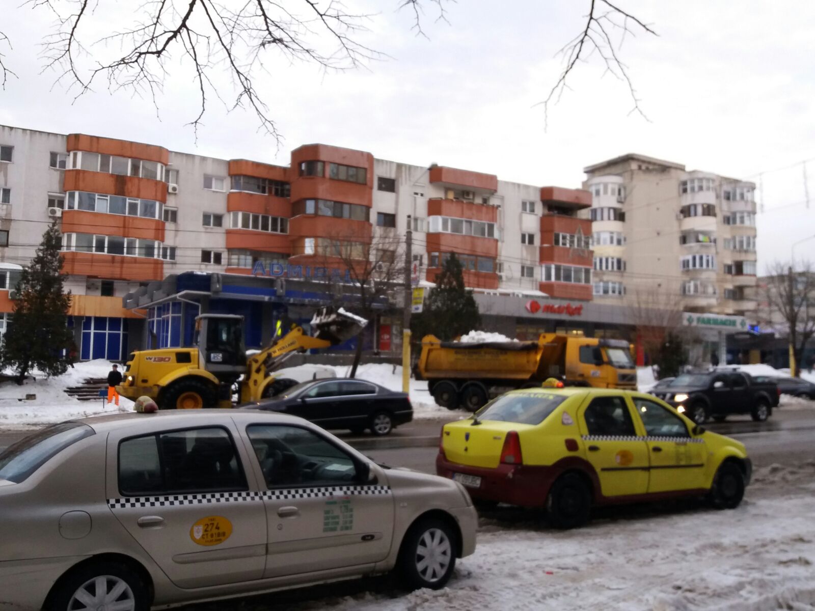 Vineri după-amiaza, utilajele au acționat pentru ridicarea zăpezii și pe bulevardul 1 Decembrie din zona Casei de Cultură din Constanța. Aici au fost văzute șase camioane însoțite de wole.