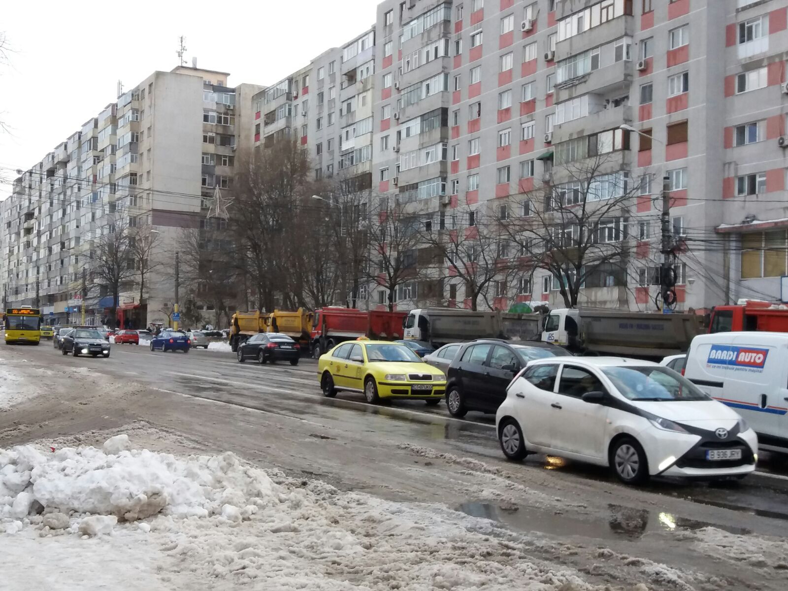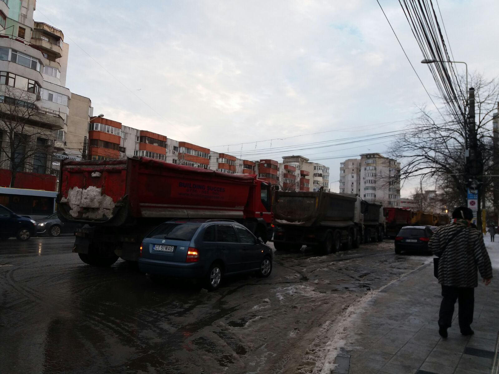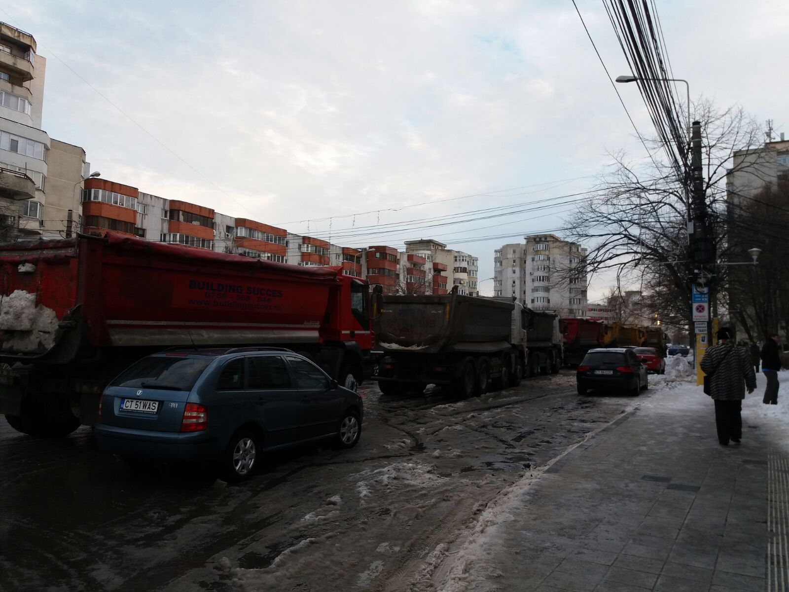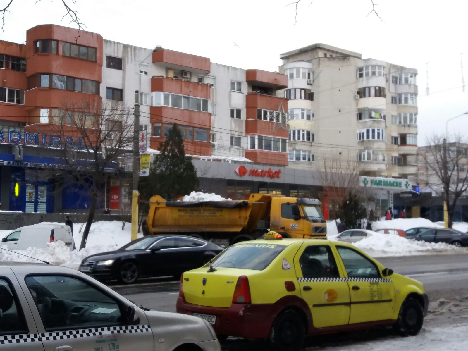 Vineri după-amiaza, utilajele au acționat pentru ridicarea zăpezii și pe bulevardul 1 Decembrie din zona Casei de Cultură din Constanța. Aici au fost văzute șase camioane însoțite de wole.
