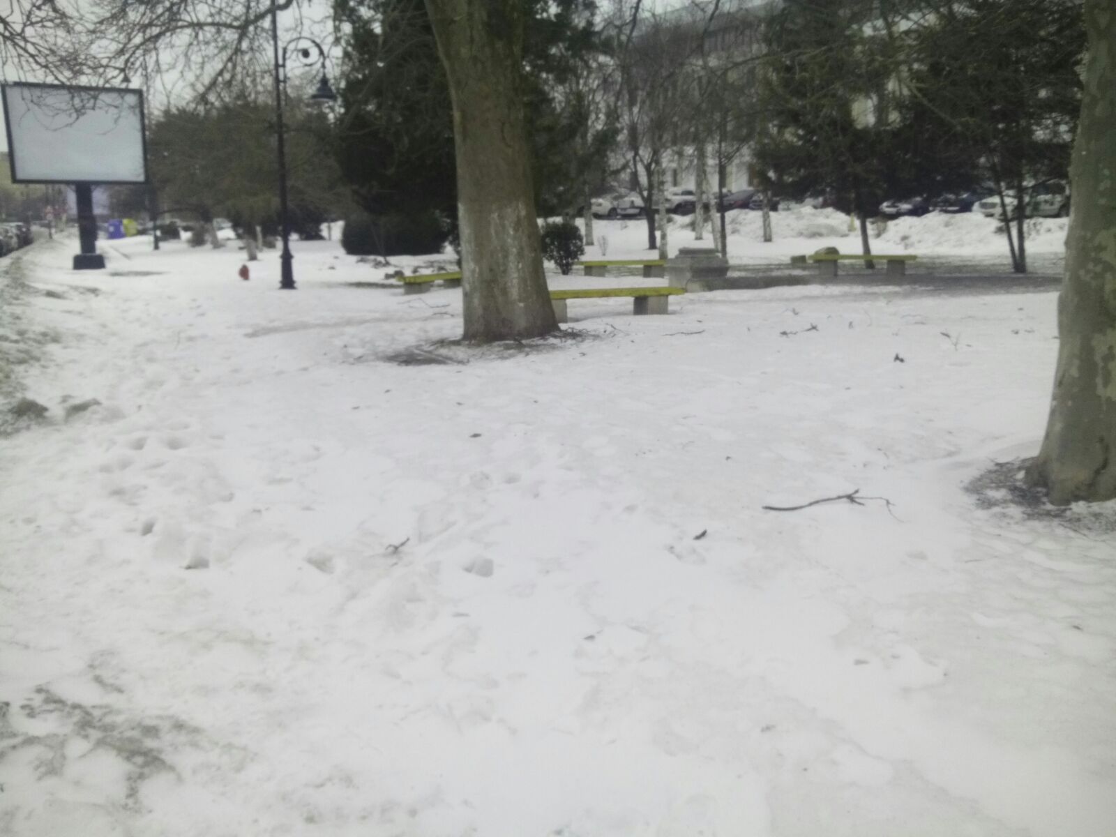 În centrul Constanței, trotuarele din jurul Palatului Administrativ, unde au sediile Consiliul Județean, Prefectura și Primăria sunt acoperite de o zăpadă imaculată!