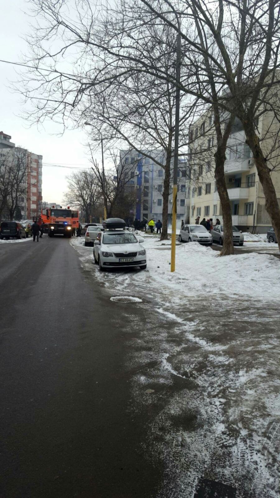 Două echipaje de pompieri ale ISU Dobrogea de la Detașamentul Fripis (Constanța oraș) se deplasează, la ora 14.45, pe strada Traian.