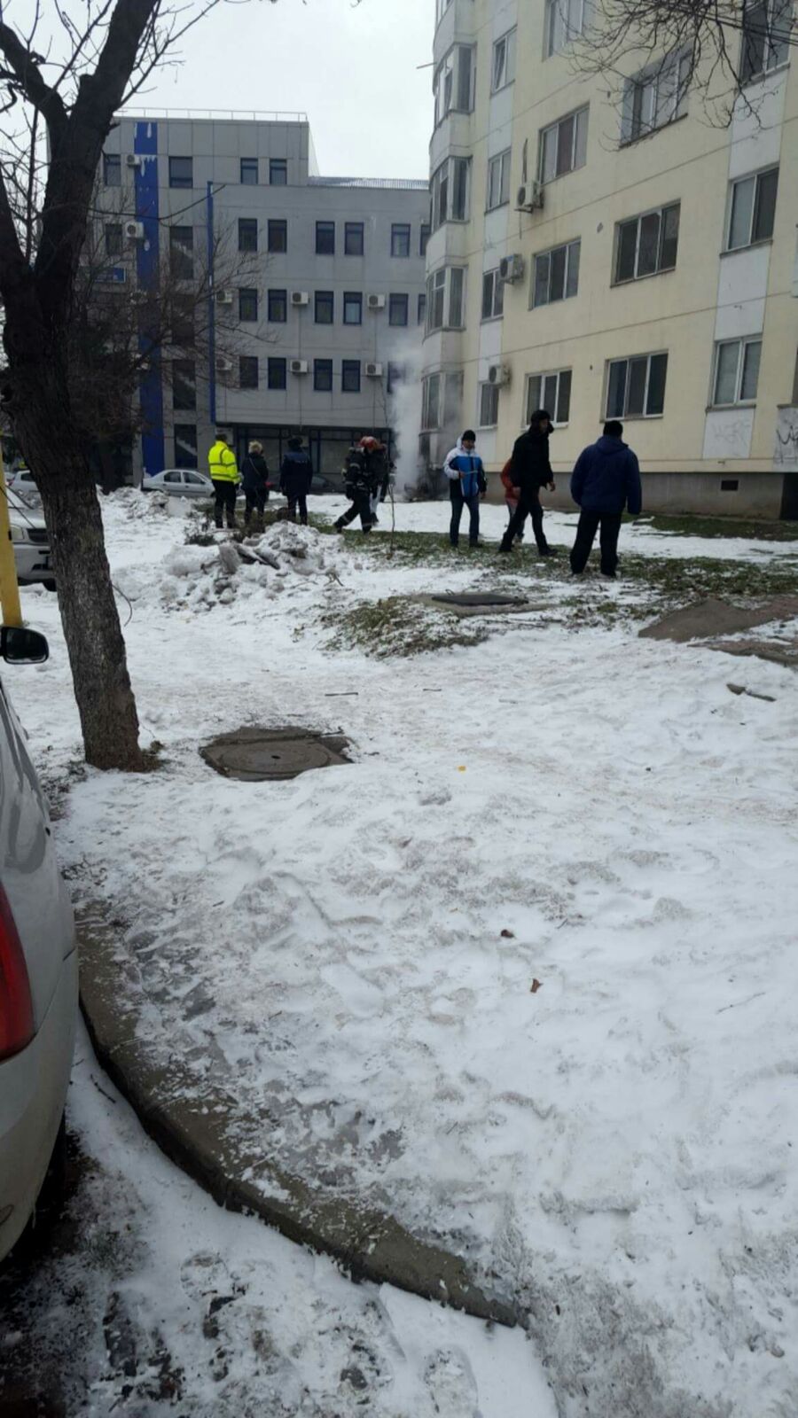 Pompierii spun că este vorba despre un adăpost improvizat sub balconul de la parter al unui bloc, unde își duc traiul, cel mai probabil, oameni ai străzii.