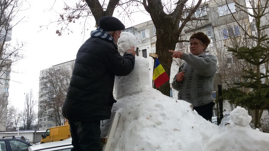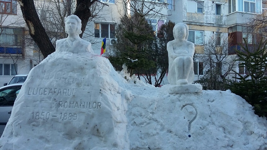 Bustul lui Alexandru Ioan Cuza a fost sculptat în zăpada dintre blocurile din cartierul Micro 21 din Galaţi de către Petru Darie.