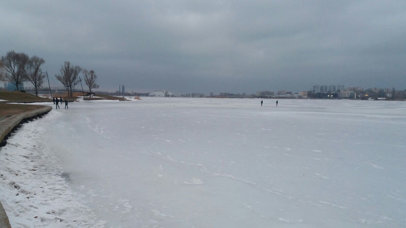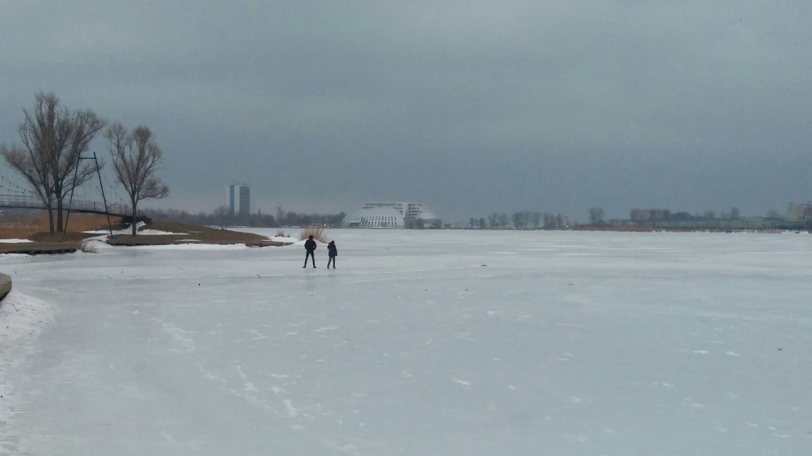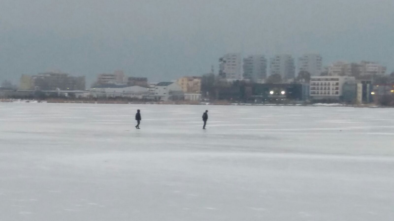 Mai mulți constănțeni au ieșit astăzi din case să se bucure de ultima zi de weekend într-un mod pe cât de inedit pe atât de periculos. Oamenii au ieșit la patinoar… pe lacul Tăbăcărie, înghețat bocnă de săptămâni bune.