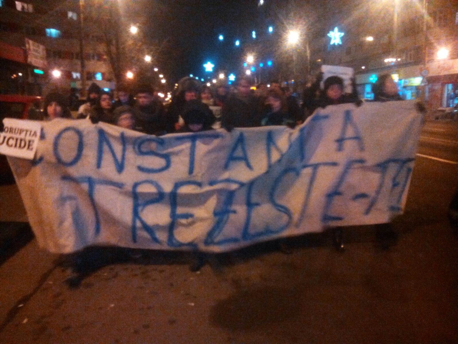 Manifestanții au revenit, în număr la fel de mare, pe platoul din fața Palatului Administrativ din Constanța. Oamenii contiună să agite pancarte și să își strige nemulțumirile cu privire la măsurile pe care guvernul vrea să le ia în domeniul justiției. „Noi de aici nu plecăm până nu ne câștigăm libertatea noastră“ este lozinca predominantă.