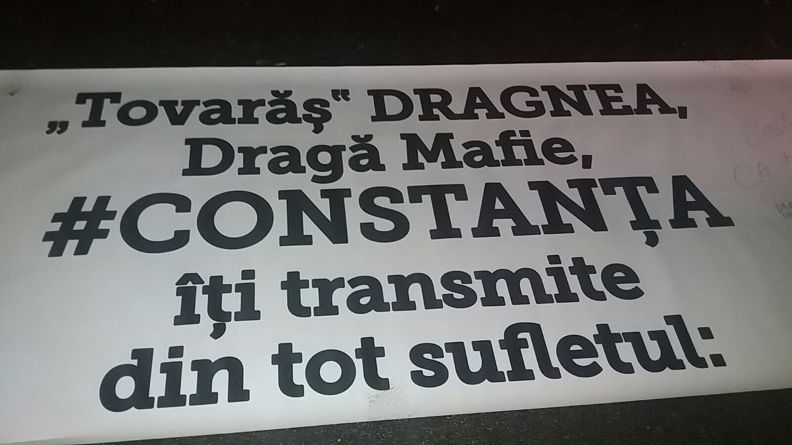 Constănțenii strânși pe platoul din fața Palatului Administrativ din Constanța scandează lozinci împotriva principalului partid de guvernământ, precum și împotriva președintelui formațiunii politice, Liviu Dragnea.