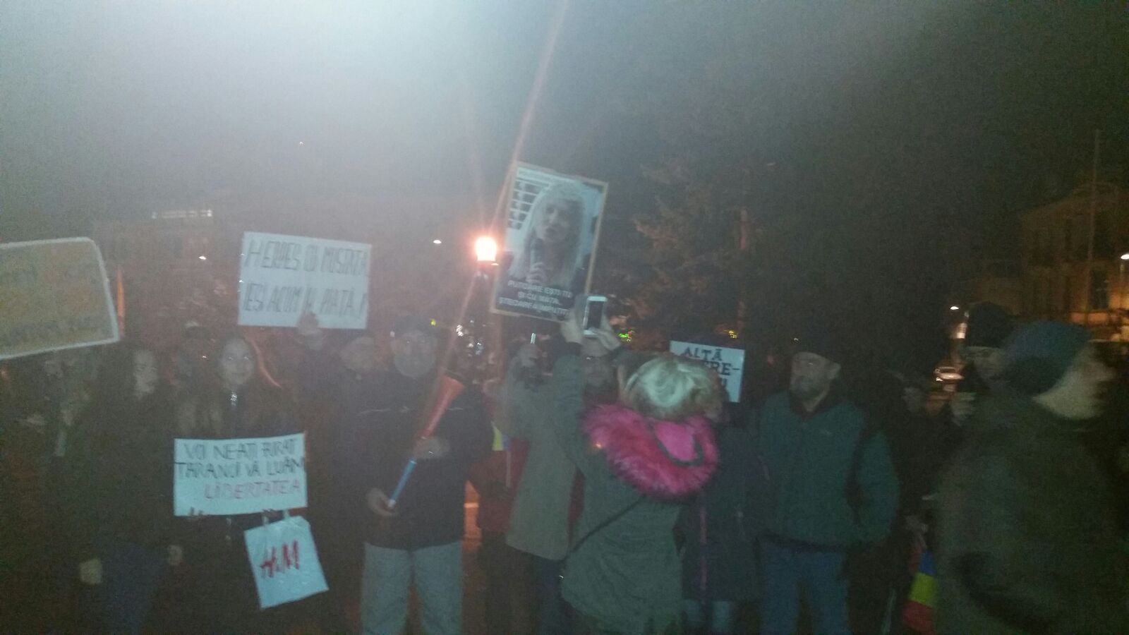 Reacțiile adverse ale mulțimii se îndreaptă de această dată și împotriva consilierului județean PSD Sabrina Nedelcu, cea care a postat, în urmă cu două zile, pe contul său de Facebook un mesaj critic și jignitor la adresa manifestanților, pe care i-a numit „putori“. Astăzi, câțiva constănțeni au venit la protest cu bannere cu figura consilierului județean.
