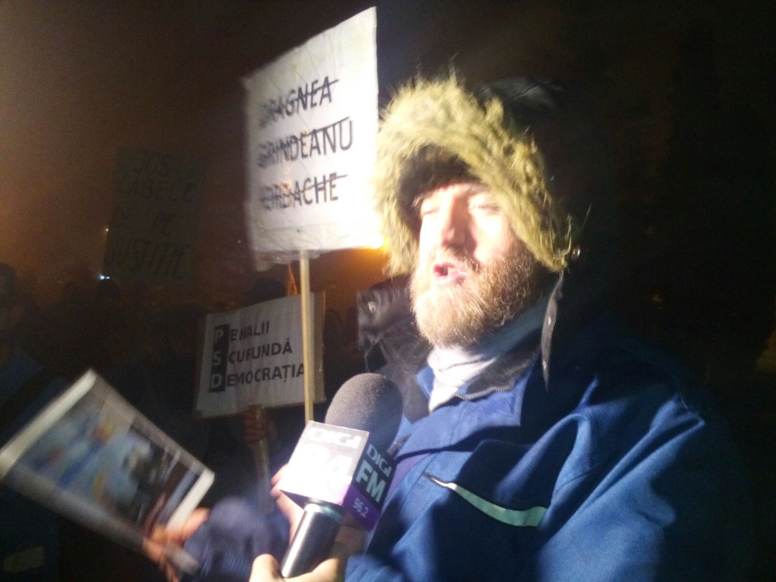 Cei prezenți la manifestație scandează „Nu stați la căldură și pe voi vă fură!”.