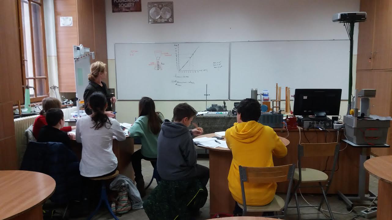 Într-o altă sală, din liceu, copii de clasa a VI-a se pregătesc pentru prima lor Olimpiadă la fizică, unde îl au ca dascăl coordonator pe profesorul Maria Neicu.