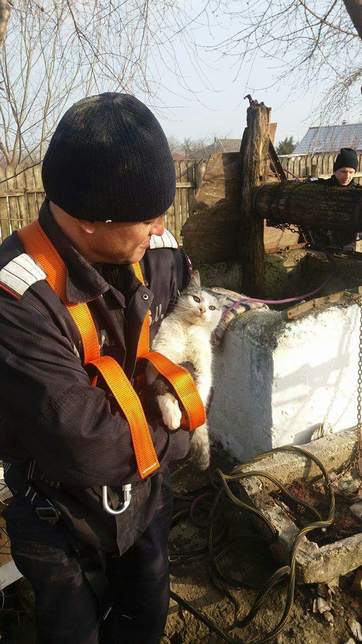 Pisica era căzută în fântână încă de luni, însă femeia nu a sunat la 112 pentru că a crezut că nu va fi luată în seamă, astfel în tot acest timp i-a aruncat animăluțului mâncare pentru a nu muri de foame.