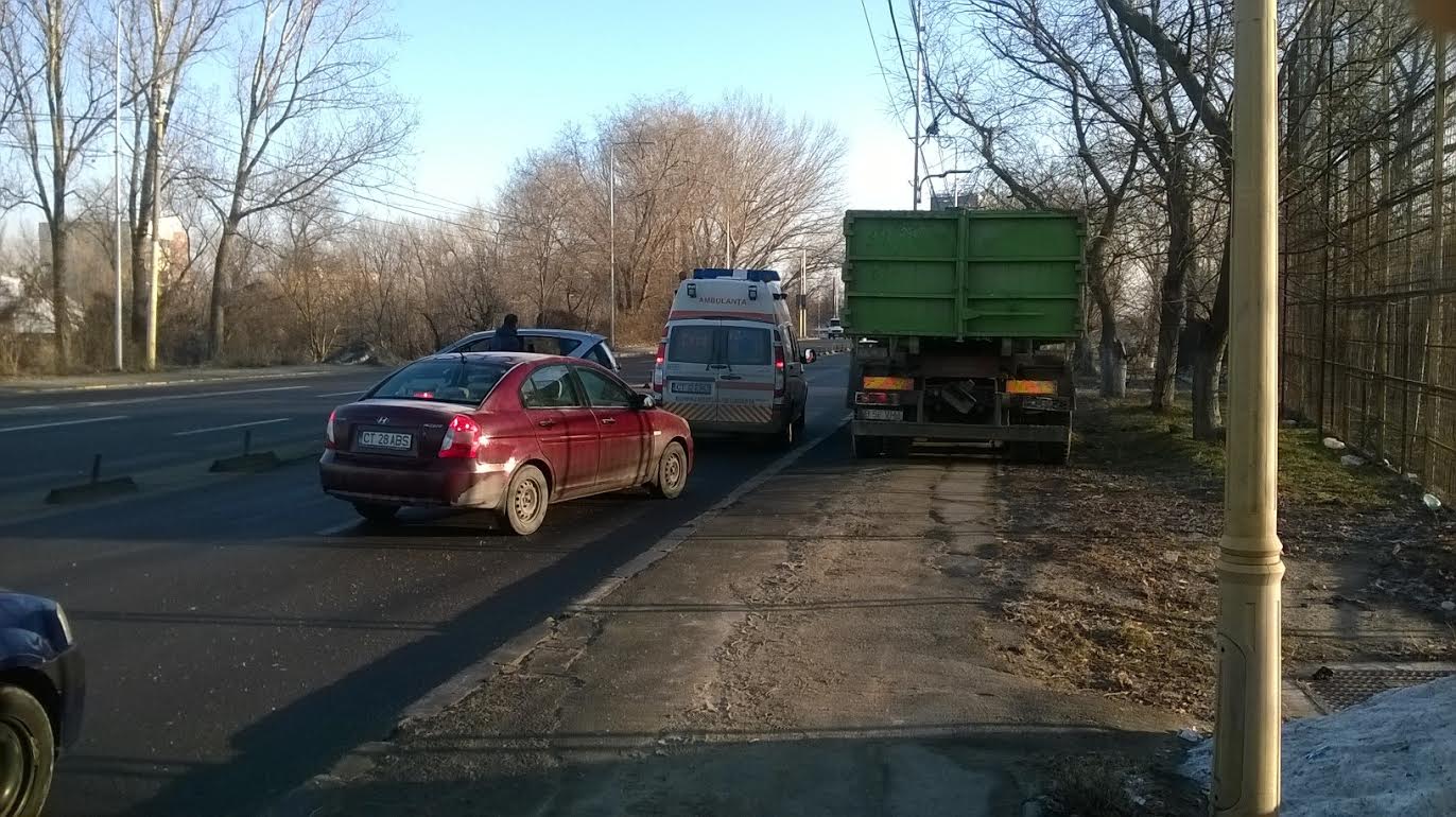 FOTO – CONSTANȚA: Accident între un autocamion de la o firmă de salubritate și un autoturism