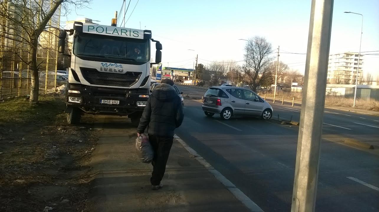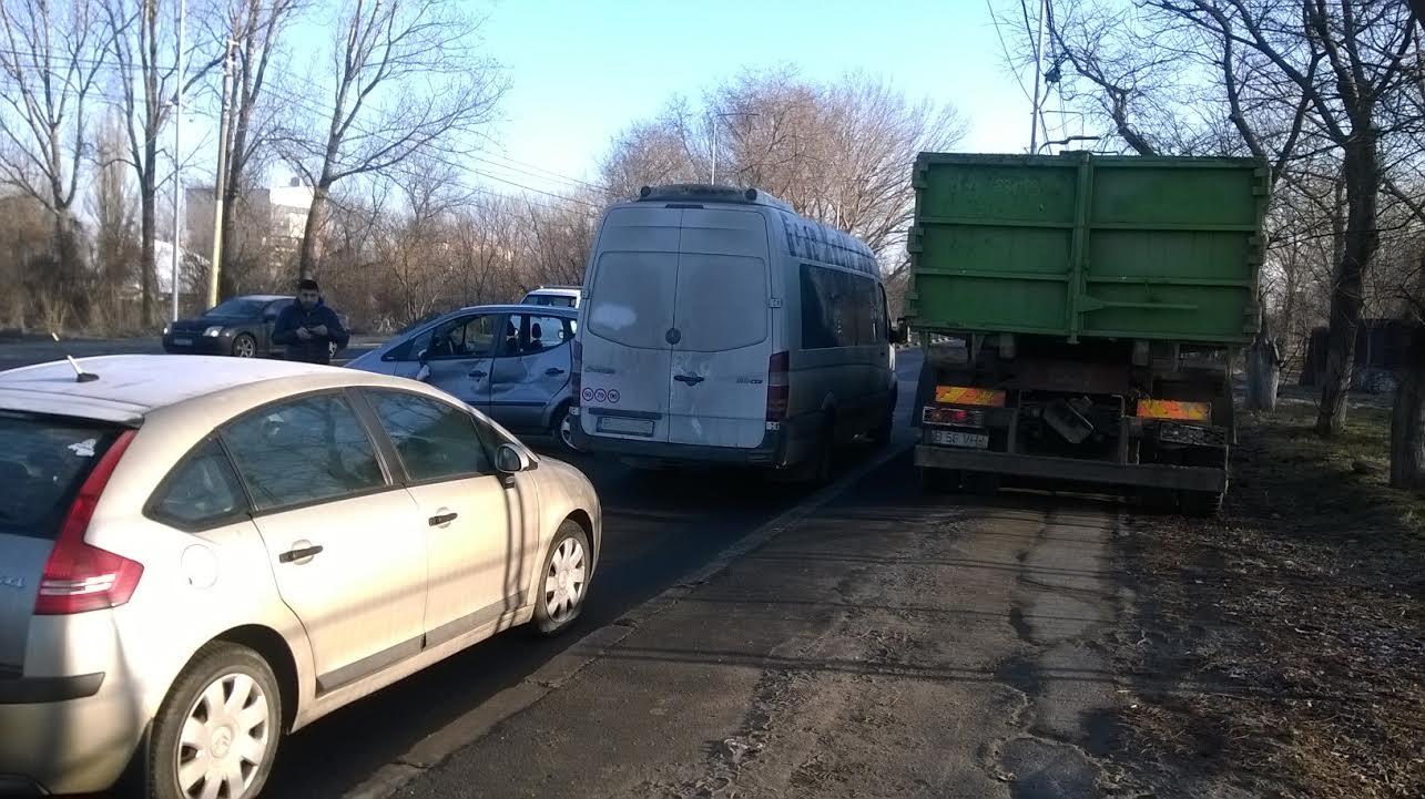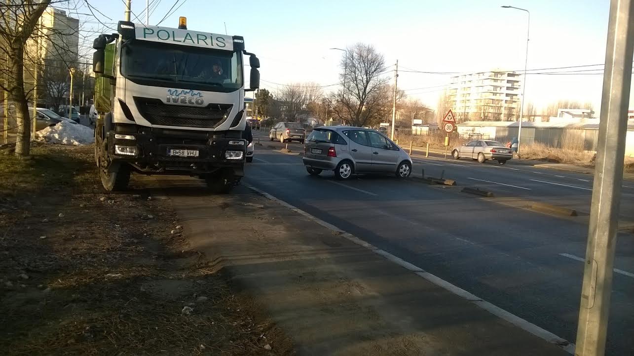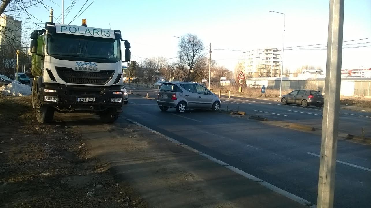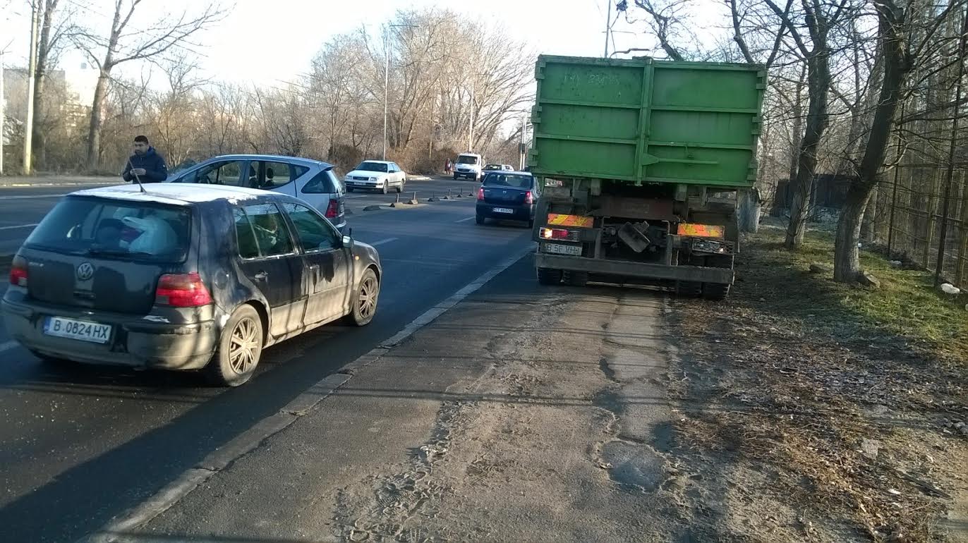 În impact au fost implicate o mașină cu numere Germania și un autocamion de la firma de salubritate Polaris din oraș.
