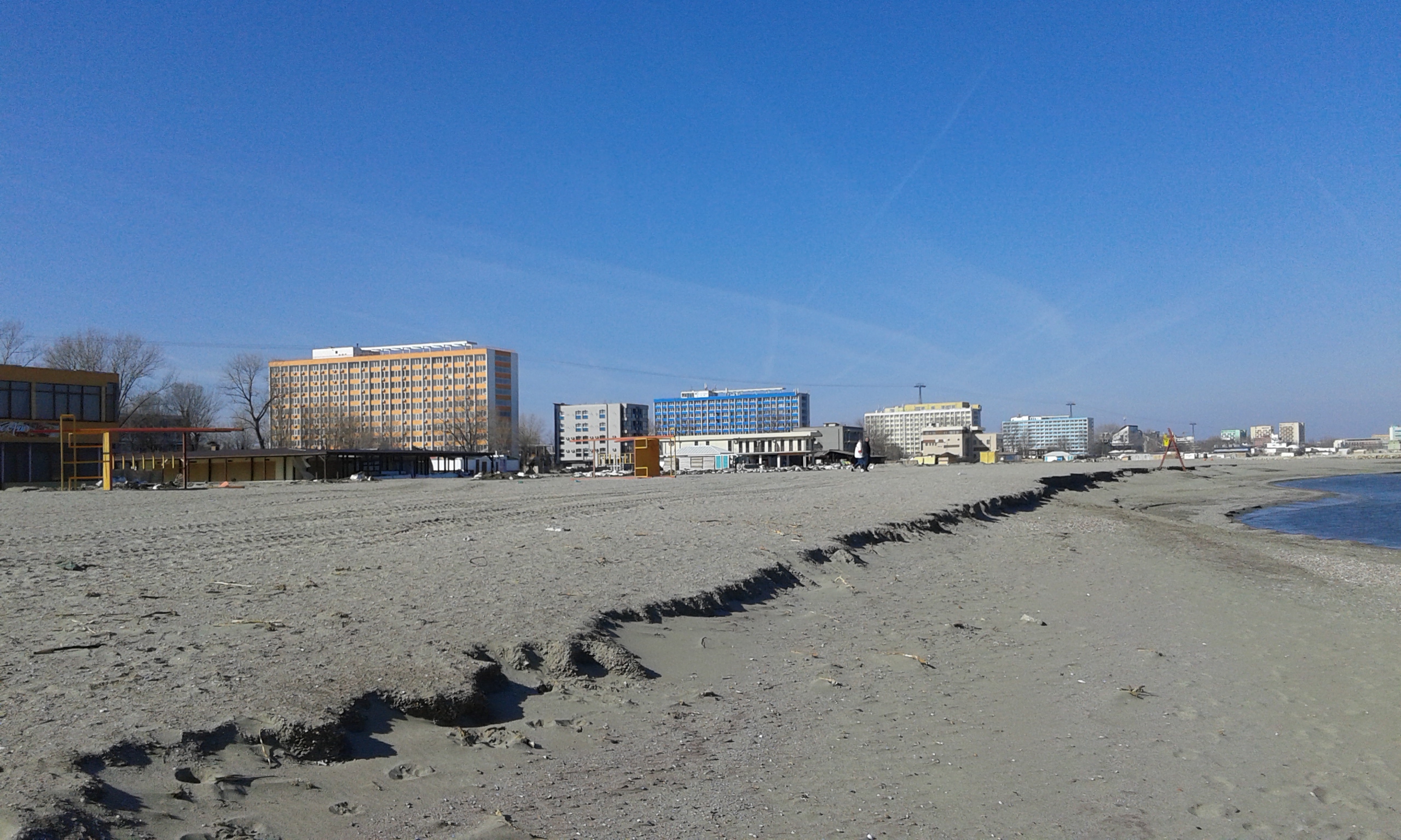 Plaja din sudul staţiunii Mamaia a început să se degradeze după iarna grea. Sute de metri pătraţi de nisip au căpătat şanţuri adânci, iar eroziunea este similară cu cea de dinaintea lărgirii plajelor şi montării digurilor de protecţie.