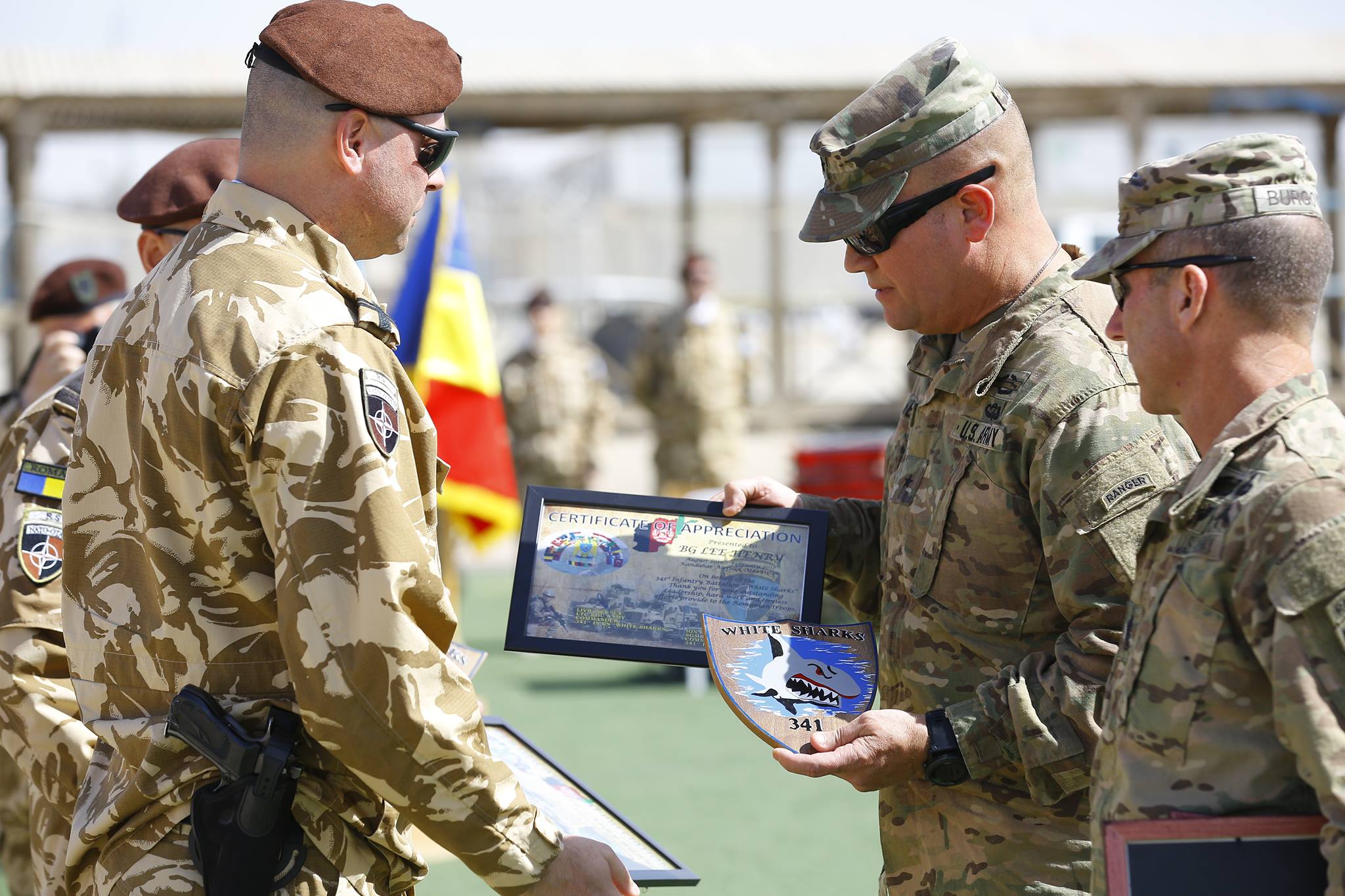 „A fost o deosebită onoare să lupt cu voi umăr la umăr”, a fost mesajul generalului de brigadă Lee Henry, cel mai înalt reprezentant militar NATO în Baza Militară Kandahar, din Afganistan.