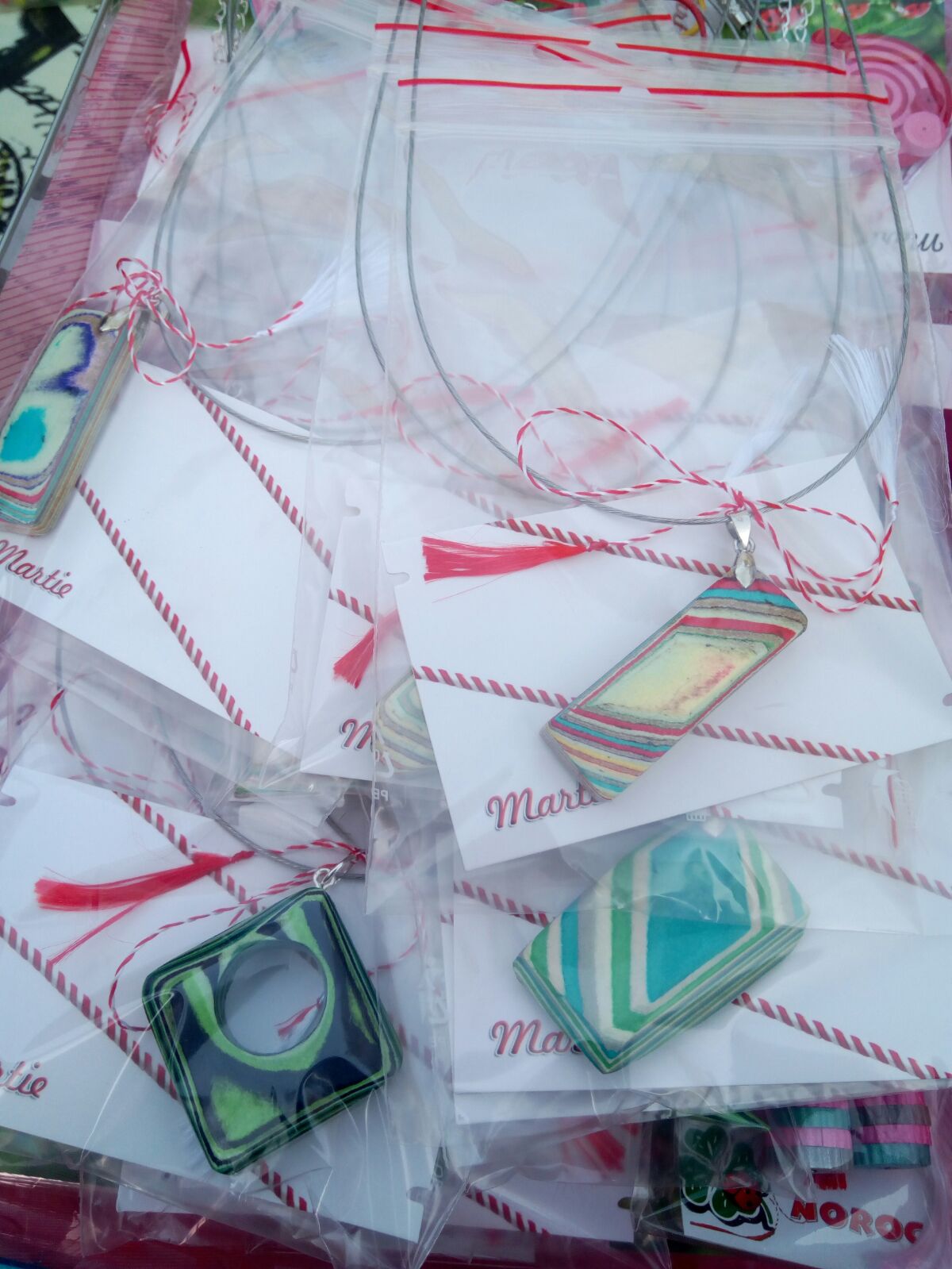 Mărţişoarele prezentate sunt inspirate din tradiţia populară şi lucrate manual din lut, piele, scoici, fir de argint, pietre şi materiale textile.