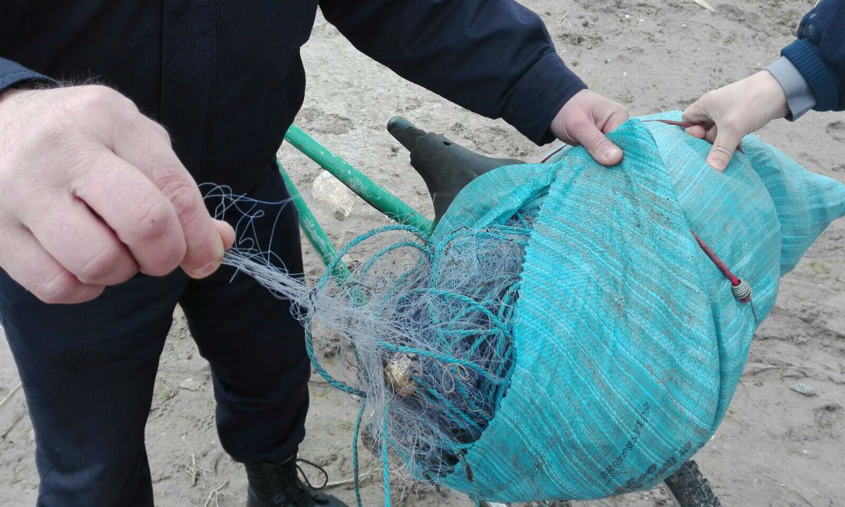 TULCEA/FOTO: Doi bărbați ,,amatori” de plimbări cu bicicleta și pescuit cu plase monofilament
