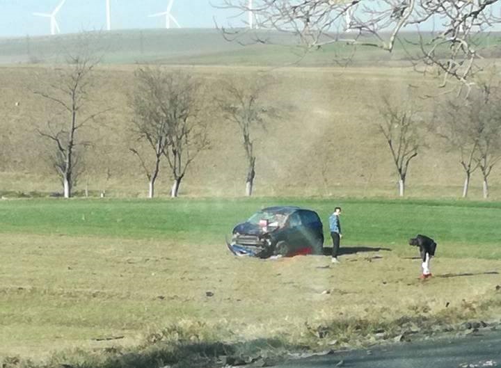 Potrivit celor de la fața locului, autoturismul a ajuns pe câmp unde s-ar fi răsturnat de mai multe ori.