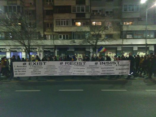 Aceștia au pancarte la ei pe care sunt scrise mesaje precum: „Corupților, furați liniștiți. CCR veghează pentru voi”, „PSD, ciuma roșie”, „Noi ca furnicile, voi ca șobolanii”, „Nu tolerăm corupția” sau „Demisia”.