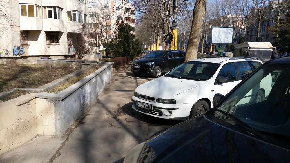 Omul din cărucior nu a dorit să îl fotografiem din faţă. Spune că are prieteni în Primărie şi nu vrea să îi facă de râs. Însă, în locul lui, pe stradă, printre maşini, mai puteau fi şi părinţi cu copii în cărucioare. Şi chiar aşa se şi întâmplă. Trotuarele sunt, în mare parte, în stare proastă, iar mulţi şoferi nu își parchează autoturismele fără să lase de multe ori trecătorilor loc să meargă pe trotuare.